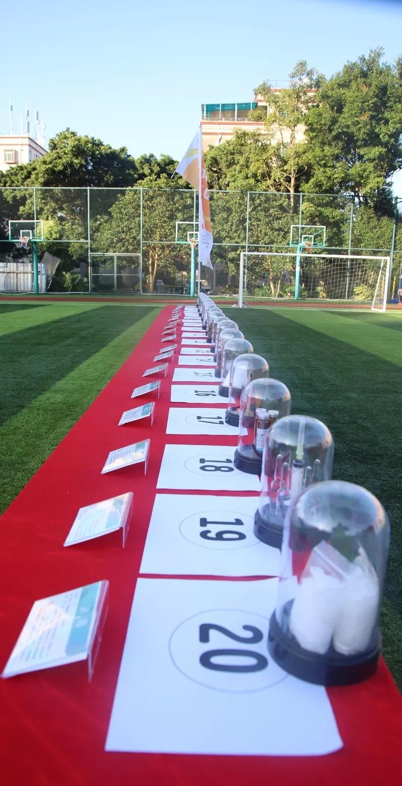 这次宣传教育活动在学校操场设立了宣传展板教育区、视频教育播放区、毒品(仿真模型)辨识区、高科技禁毒体验区(有禁毒VR和多点触控一体机等科技展示)、禁毒游戏互动区(共分为5个游戏)等多个教育板块。