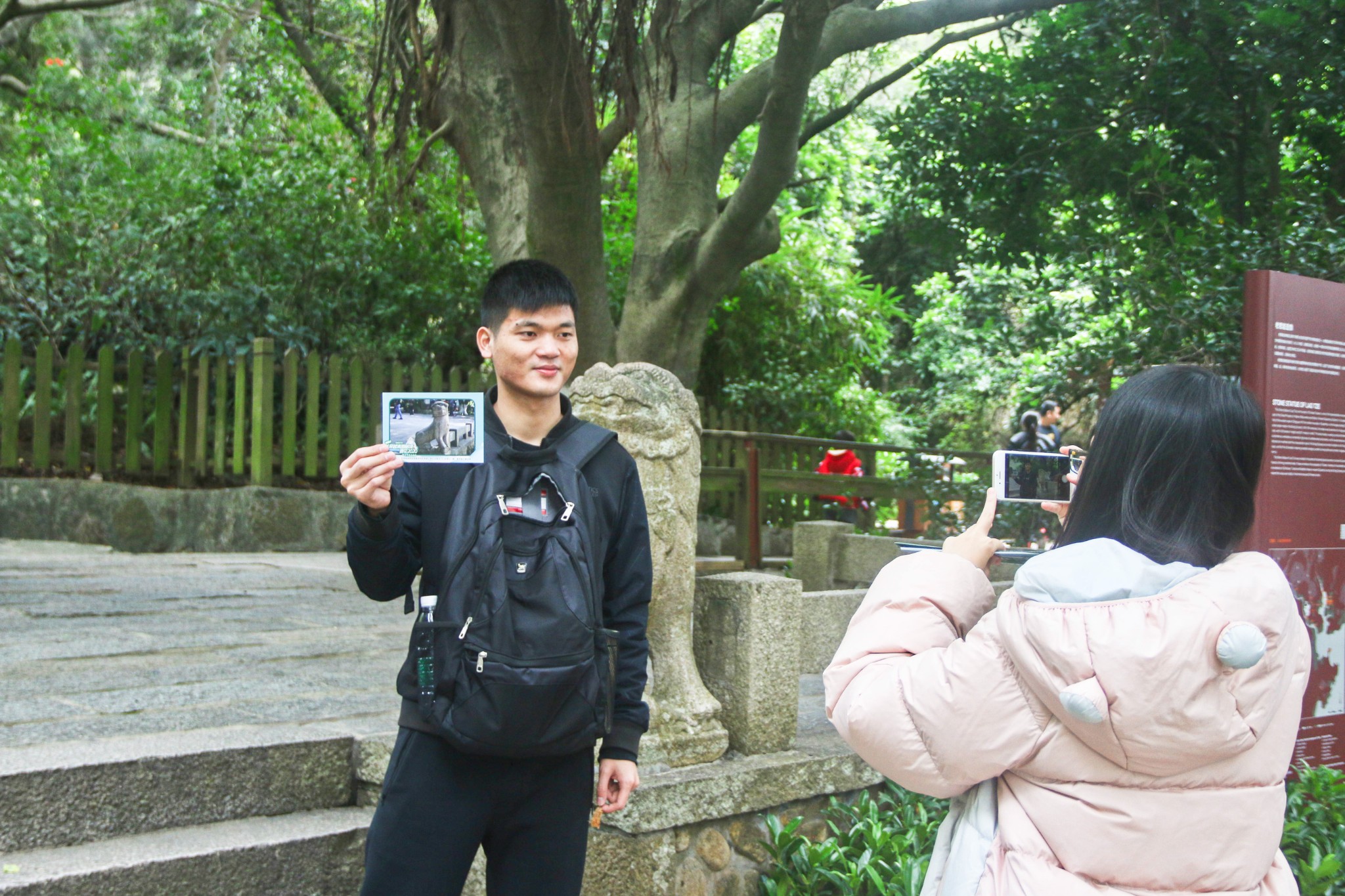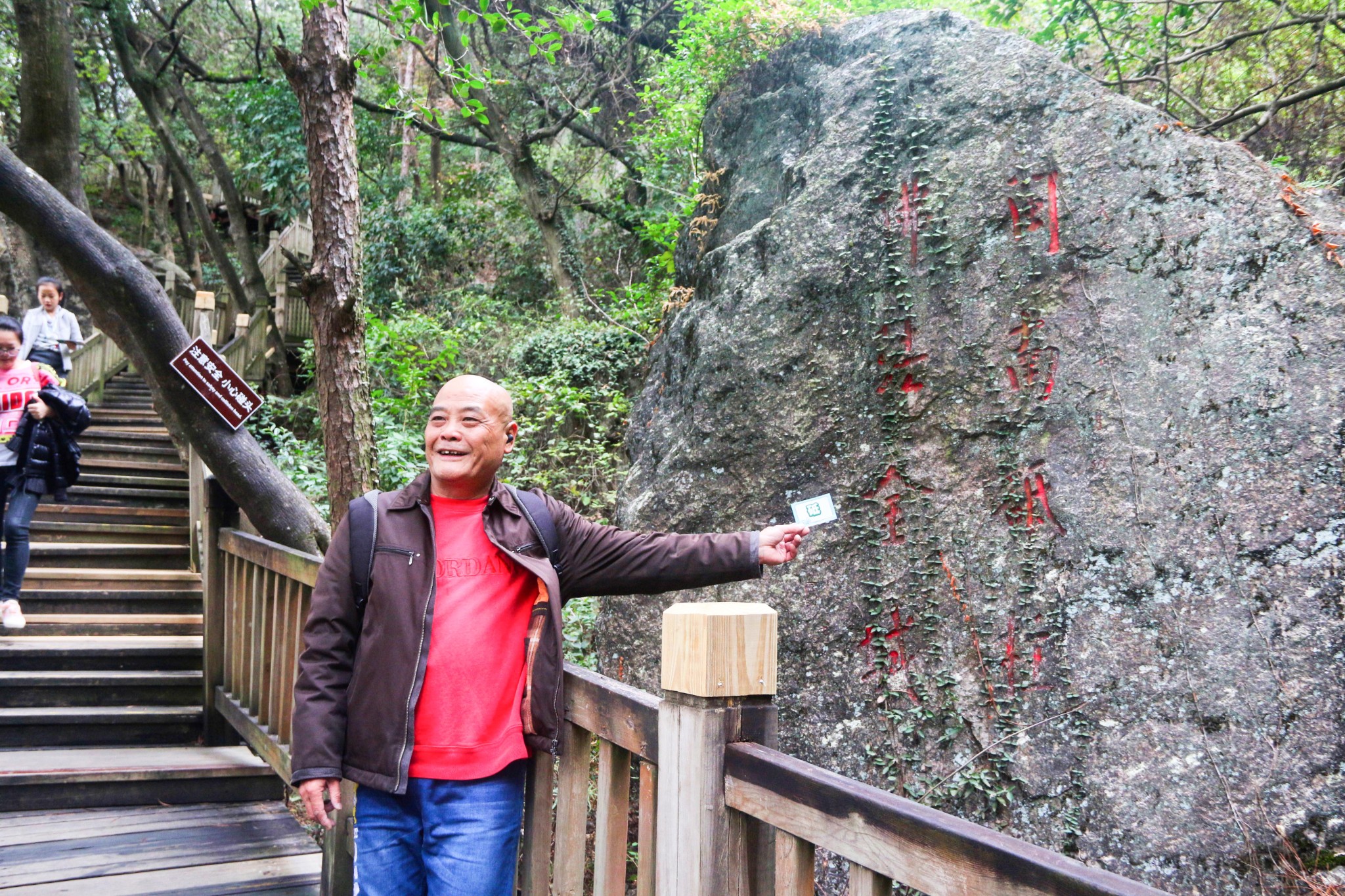 完成了第一个关卡,开启第二关卡“寻字挑战”,我们抽取了“寻字卡”,前往“老君岩”至“第一山”的登山步道,找寻藏身在山道角落里的字迹。