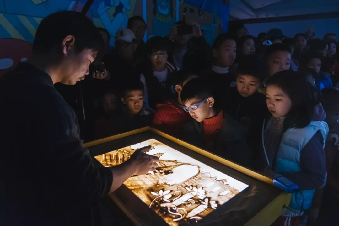 沙画艺术家为观众献上丝路主题沙画表演。演出中,沙粒在老师的手中似乎被赋予了生命,灵动的双手让沙盘中的 丝绸之路 穿越古今,东西塔、 洛阳 桥、清源山……生动地呈现在观众面前,令人赞叹不已。