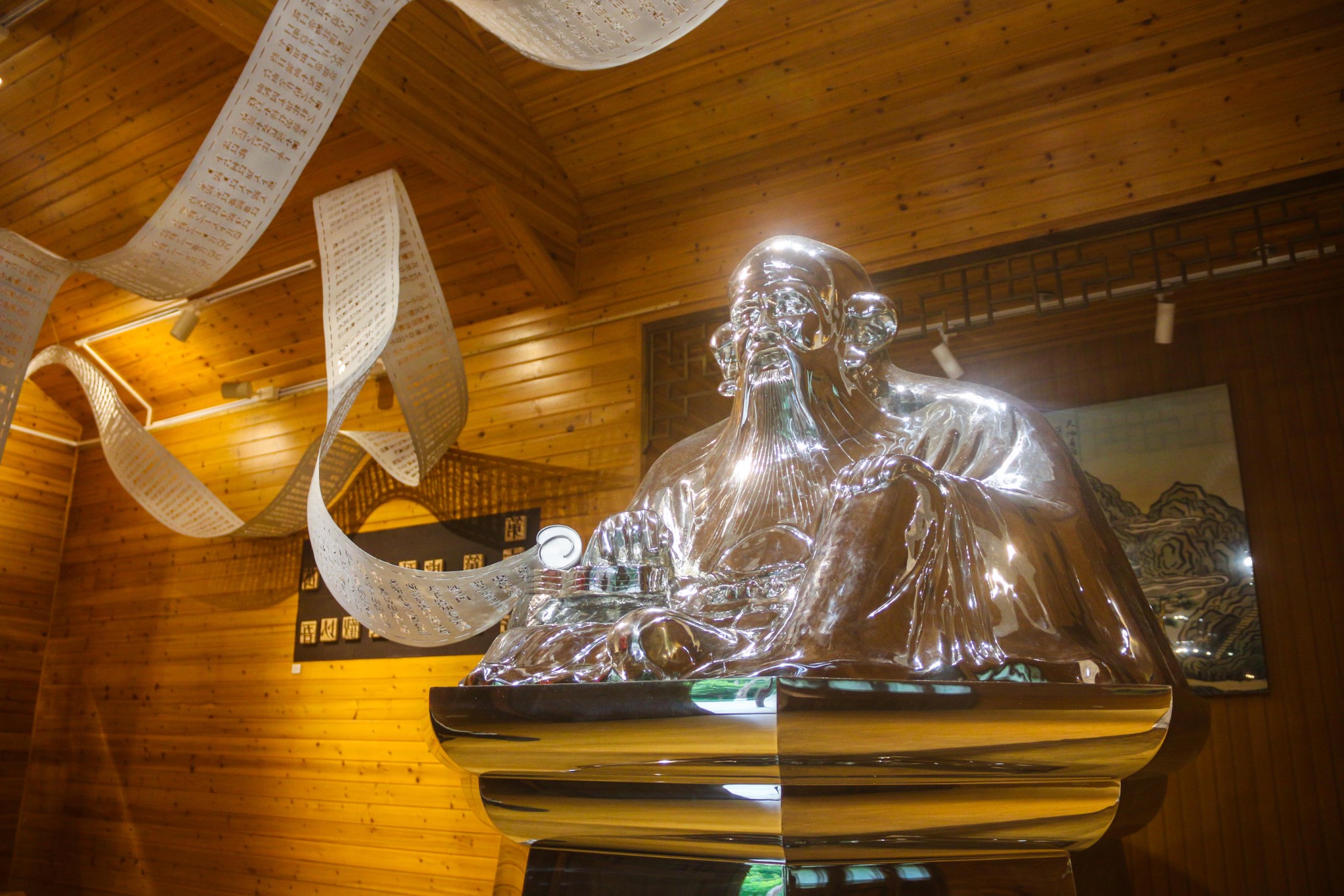 适逢清源山【观复】展览开放,以当代艺术形式塑老子像,舒展道德经传承脉络,老子笔下的皇皇巨著《道德经》,以画卷的形式环绕塑像,一种视觉冲击自然而然地将“新颖”与“古老”的距离拉近。
