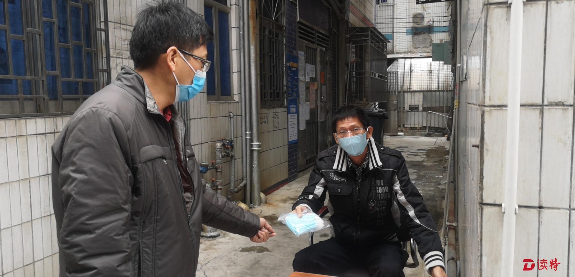 布心社区党委第一支部党员退役军人赖宝友为社区捐赠防疫物资