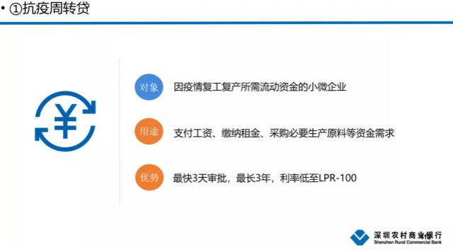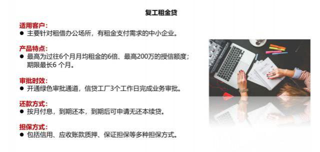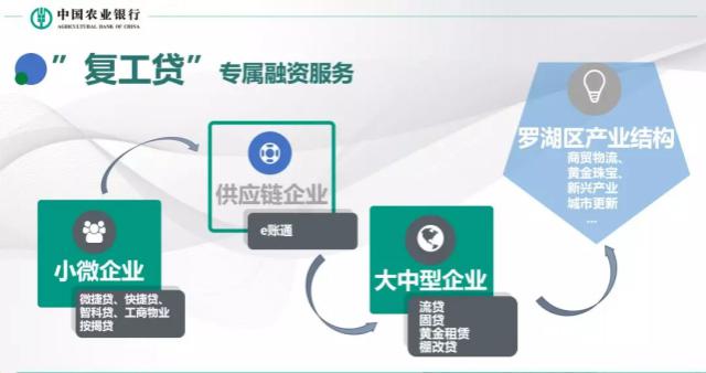 基于此,去年将总部落户罗湖的浦发银行,精准针对租借办公场所,有租金支付需求的中小企业,推出复工租金贷,目前已经主动联系了罗湖接近 100 家企业,有些在审批阶段,有些已经发放贷款。