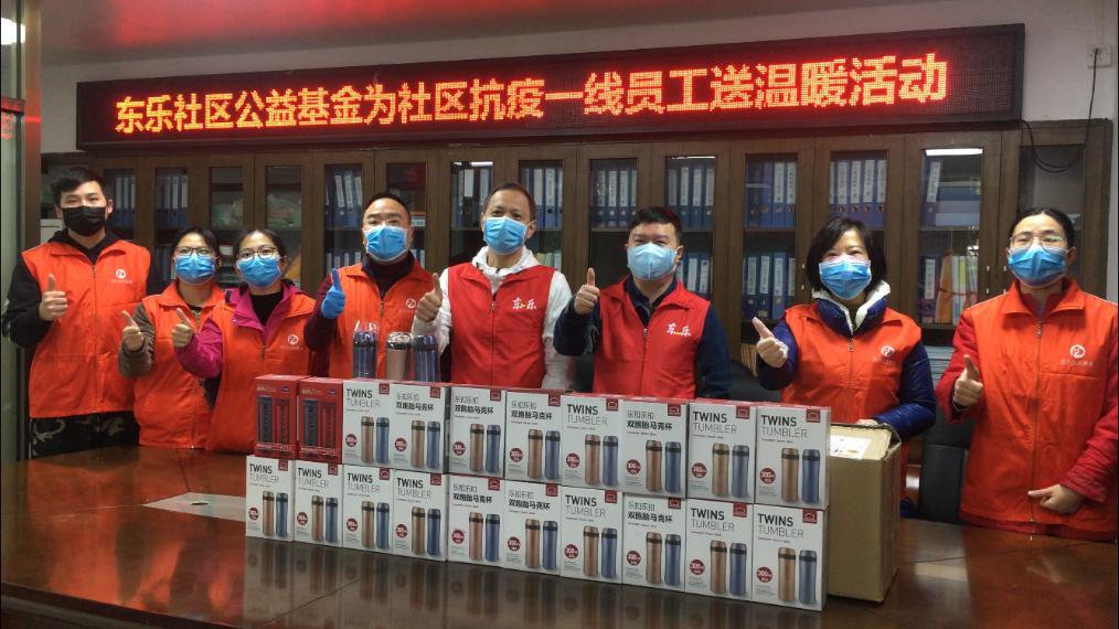 此外,东乐社区还给各小区门岗的 100 名保安人员送去了保温杯,为 100 多名的来深建设者赠送了 500 多个口罩,派发了集体宿舍防控指南来指导他们做好防范。