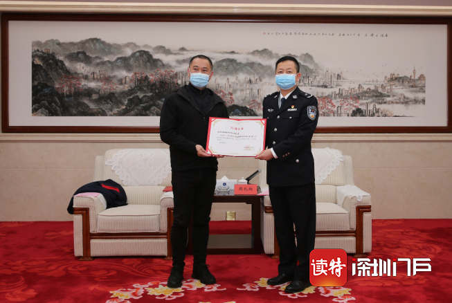 在近日举行的捐赠活动上,深圳市公安局党委副书记、常务副局长周兆翔为爱心企业颁发了捐赠证书。市公安局警务保障部主任冯勇主持活动,警务保障部副主任陈小雷与会见证。