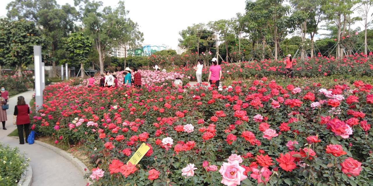 四月天,应已是花败叶茂季节,香密公园却是花儿朵朵齐争艳,