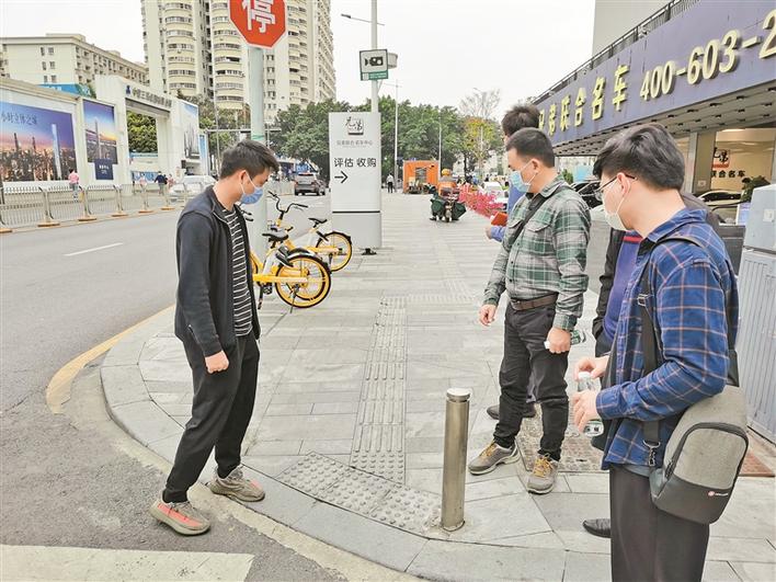▲罗湖区统筹推进无障碍建设,图为工作人员在街头考察无障碍设施