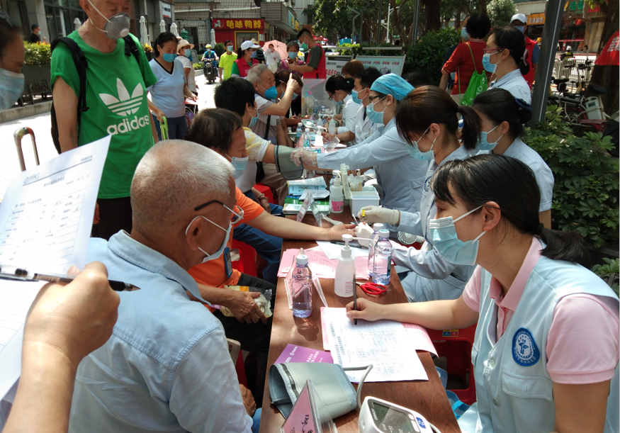 在活动现场,设有莲塘各社康中心专家为社区居民群众就常见多发病、日常疾病预防、健康饮食等方面的咨询;社康医务人员围绕宣传主题,对在疫情期间给予针对性防疫健康教育和用药指导。现场还对参与活动的居民进行体温测量、流行病学调查、家庭医生签约、免费量血压和血糖等服务、健康科普等形式活动,提高家庭医生签约服务知晓度。