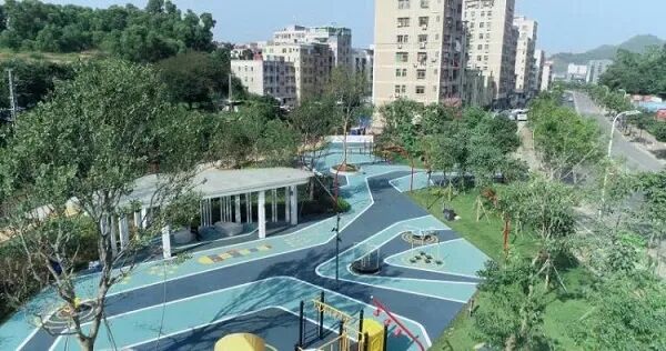 据介绍,新园路街心公园所在地原本是一片荒地,通过改造形成一个“全龄化的运动花园”,在建设中,公园采用了透水环保石、透水地坪、生态植草沟、雨水花园等措施;建设自然积存、自然渗透、自然净化的“海绵城市”,节约水资源,保护和改善城市生态环境,促进生态文明建设。