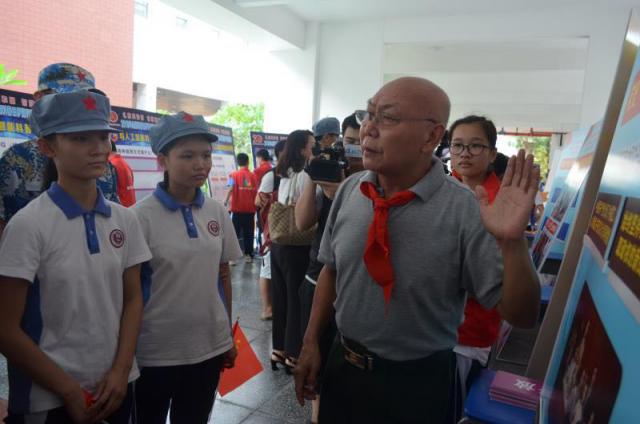 2012 年到罗湖区关工委任职后,他发挥自己的特长和优势,经常对青少年开展革命历史传统教育。他收集了一百多张珍贵的历史照片,自行设计、制作了图文并茂的《东江纵队革命历史》PPT 电子课件,为大专院校、中学、部队、街道的青少年开设了 30 多场讲座,听众达一万多人次。