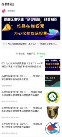 西外,小学防疫团队还在线组织投票活动,将罗湖区各小学最终遴选出的447张科普手抄报、247篇科普小报告、286个科普微视频借助网络全面展示,借此普及防疫知识。投票活动累计83万次投票、60万次访问量,网络平台扩大了传播力影响力,让防疫知识深入人心。
