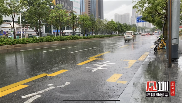 车辆驶过积水处都能缓慢通行,避免溅到行人,做“文明深圳人”。