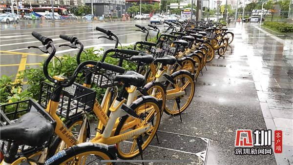 平日里最受宠的“小黄车”被冷落在一旁,整齐有序地摆放在规定停车区域内。