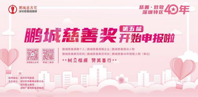 第五届鹏城慈善奖和 2019 年度深圳慈善捐赠榜即日起开始申报,申报时间为 2020 年 6 — 9 月。