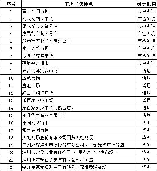 ▲罗湖区设置有“你送我检”快检点的商场(市场)
