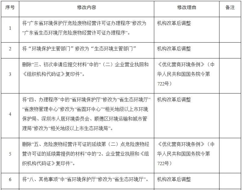 关于修改<广东省生态环境厅危险废物经营许可证办理程序>部分条款的通知