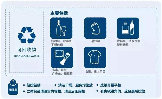 [size=100%]4.可回收物:是指废纸张、废塑料、废玻璃制品、废金属、废织物等适宜回收和可循环利用的生活废弃物。