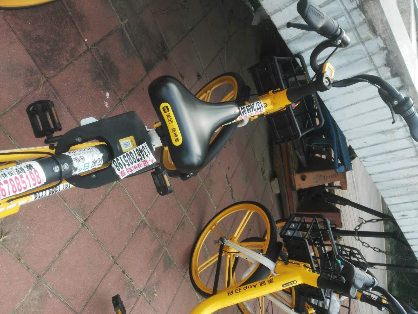很多共享单车被违法分子贴满了小广告。