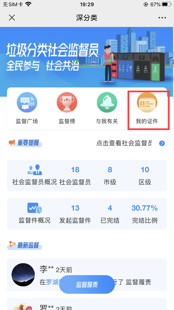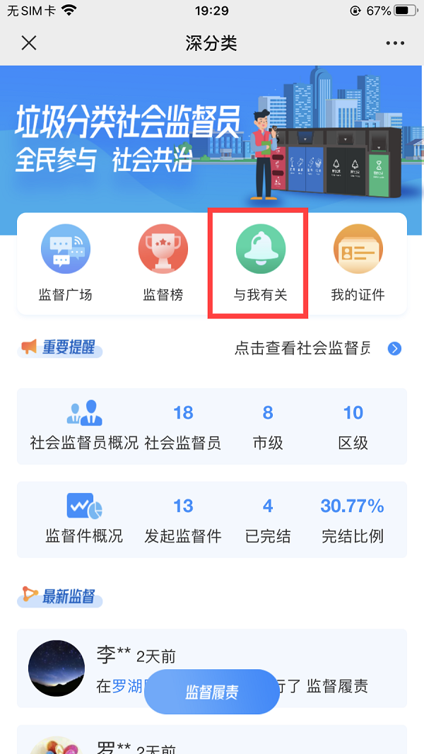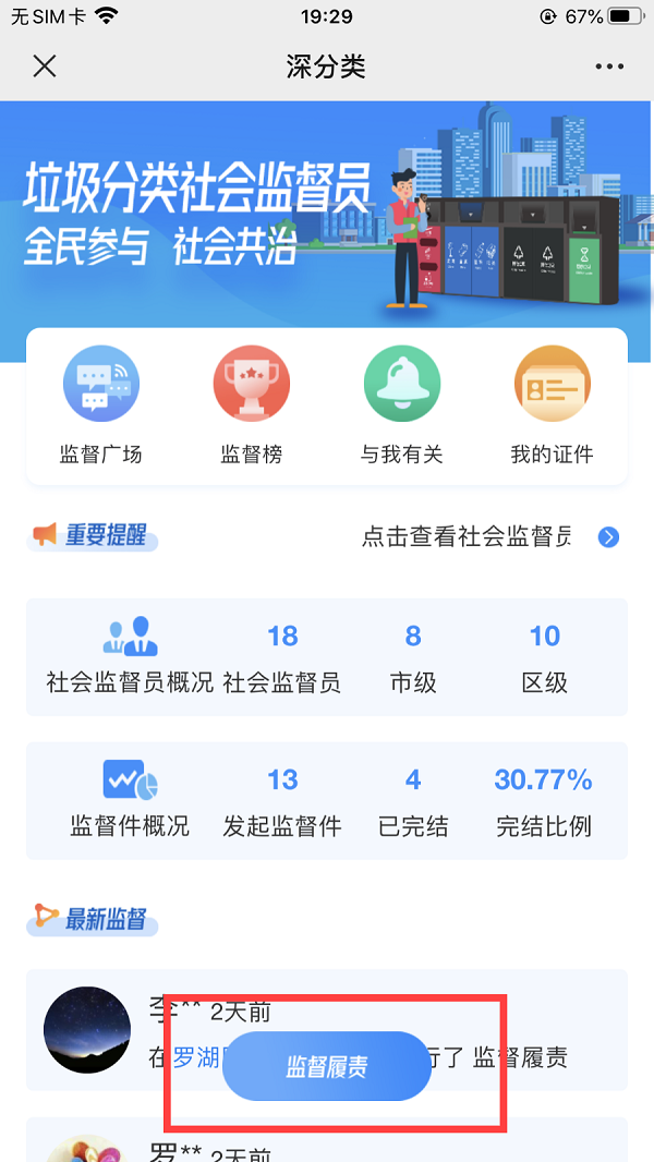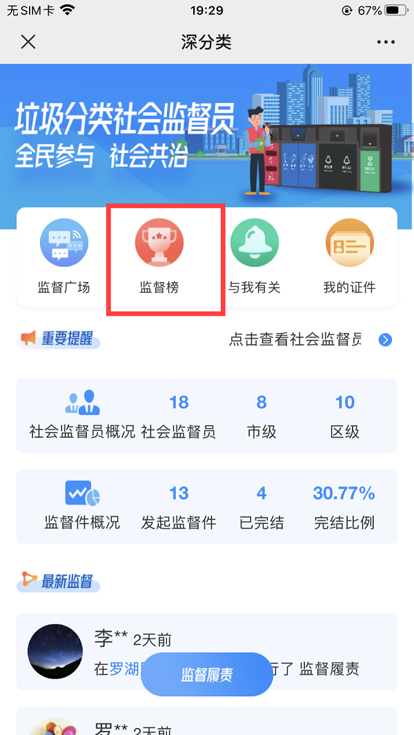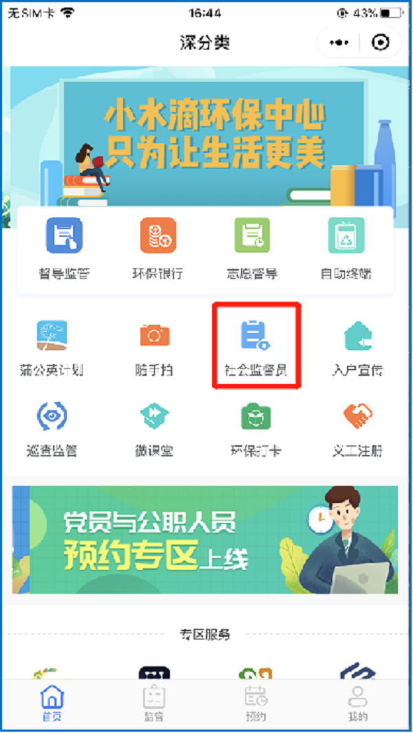 即可进入深分类小程序,点击进入“社会督导员”功能。
