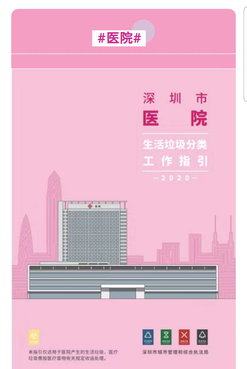 为指导生活垃圾分类投放与收集设施设置,推动构建科学合理、简便易行的分类投放体系,深圳市城市管理和综合执法局组织编制了学校、工业园、酒店、农贸市场、机关事业单位、公园景区、医院、餐饮场所、城中村、住宅区、商务写字楼、大型商超12 类场所的生活垃圾分类投放工作指引。