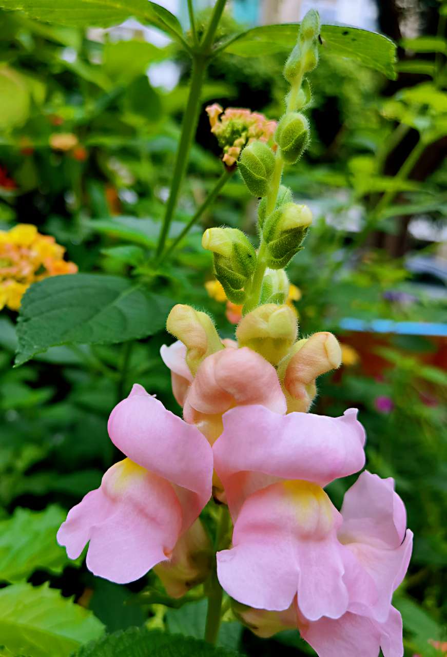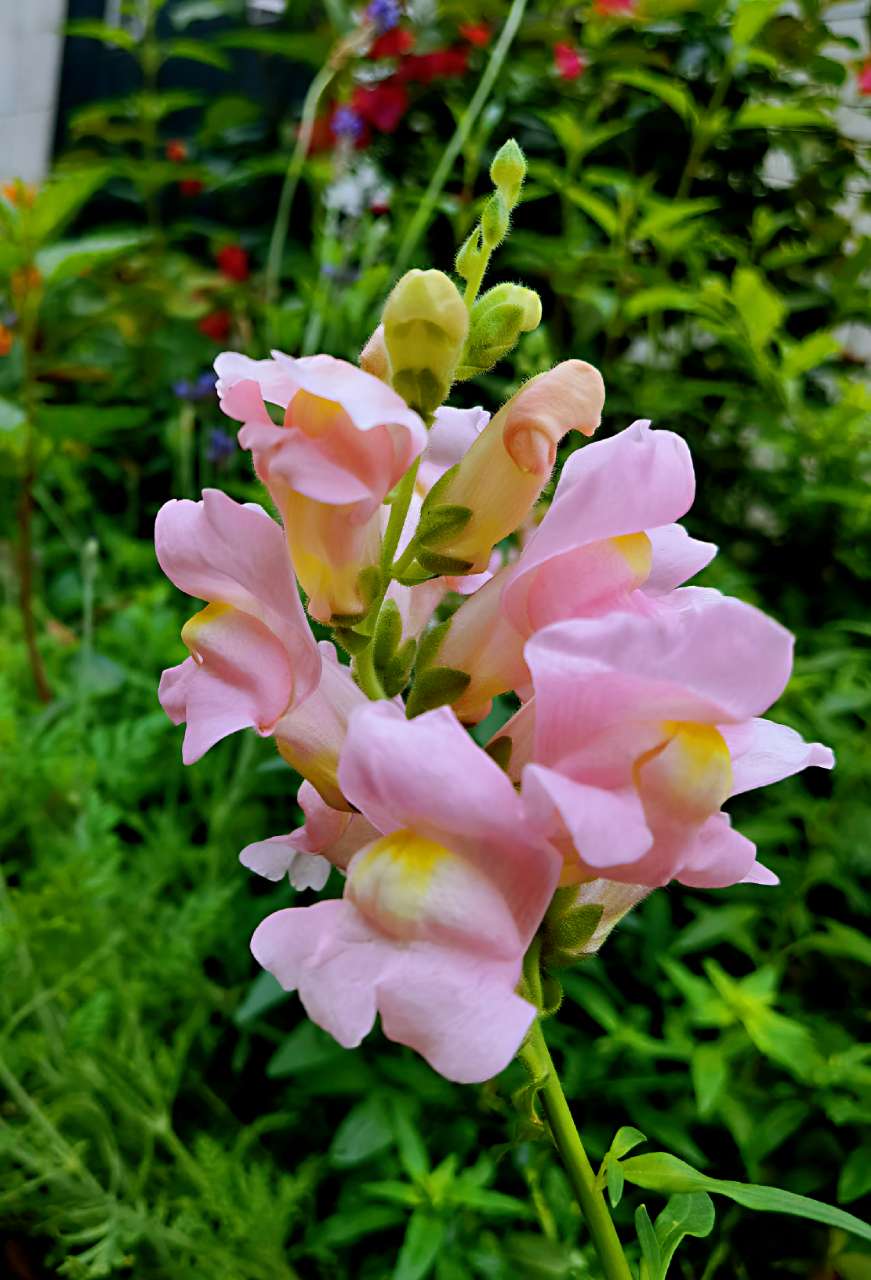 拉丁学名:(Antirrhinum majus L.)株高20~70厘米,叶片长圆状披针形。总状花序,花冠筒状唇形,基部膨大成囊状,上唇直立,2裂,下唇3裂,开展外曲。有白、淡红、深红、肉色、深黄、浅黄、黄橙等色。