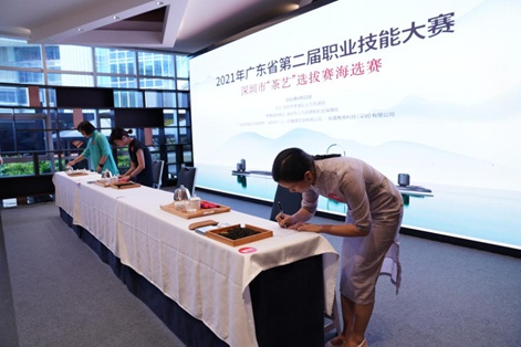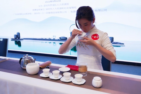 9月22日下午,由深圳市人力资源和社会保障局指导,罗湖区人力资源局主办的2021年广东省第二届职业技能大赛深圳市“茶艺”项目选拔赛海选在深圳市罗湖区宝安北路宝能党群服务中心鸣锣开赛。