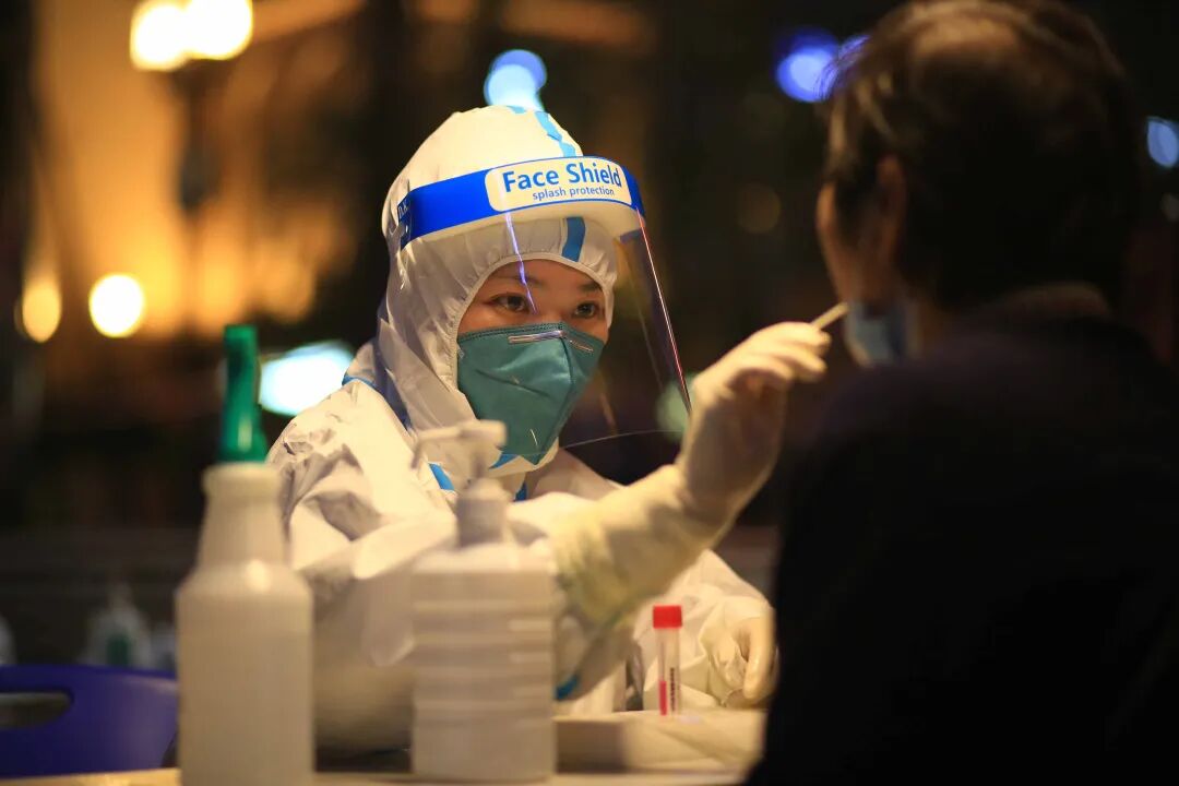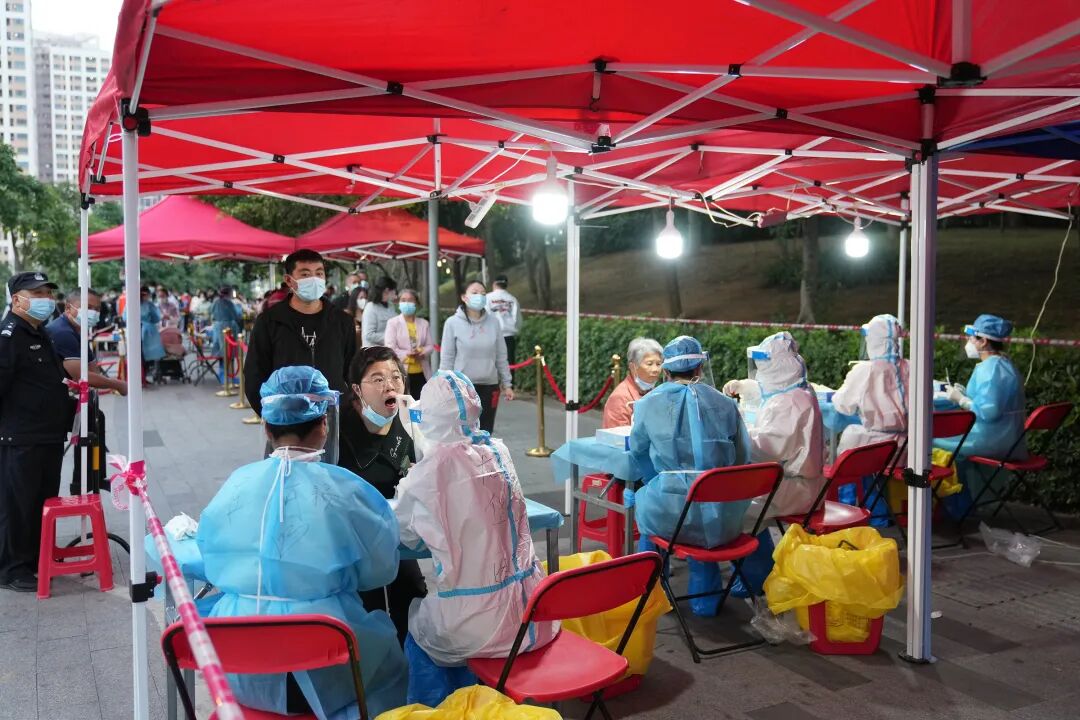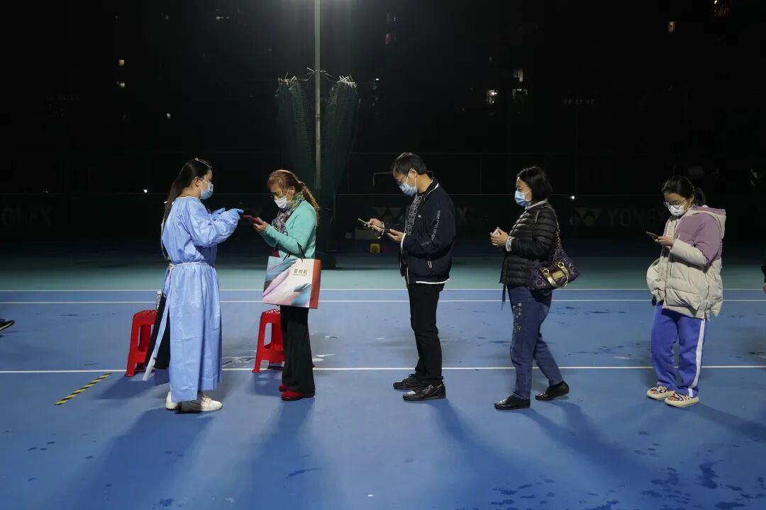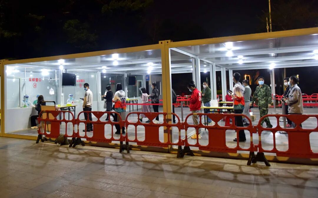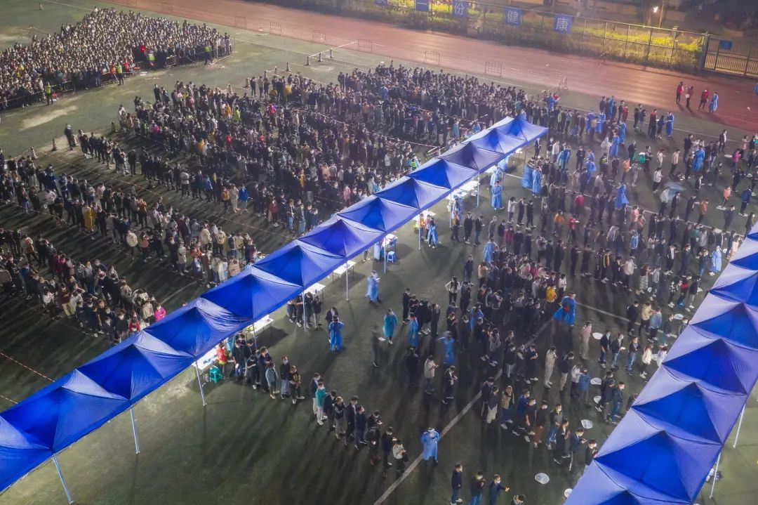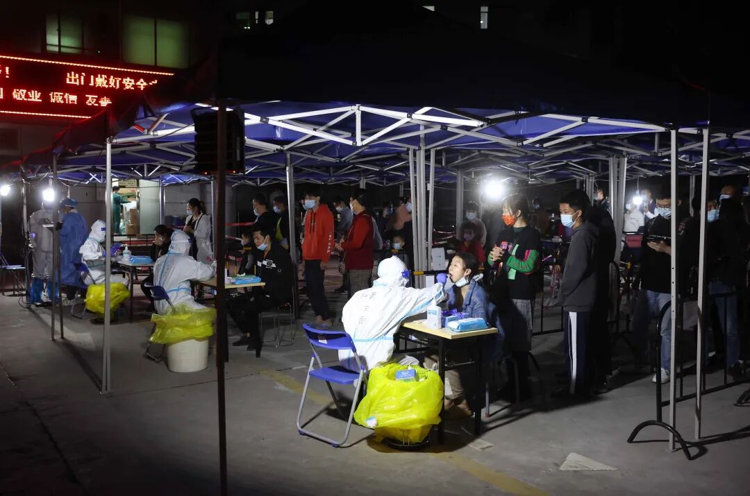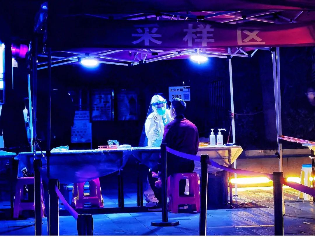 1月8日18时56分,翠湖社区全社区居民正进行第二轮核酸采样,市民有序前往社区四个指定核酸采样点采样。数百名医务人员、志愿者、义工挑灯夜战,协助居民有序、安全完成核酸采样。杨少昆 摄