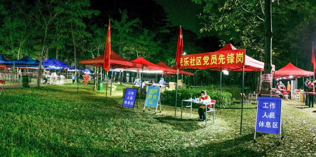 1月8日21时17分,在龙华区民乐社区,工作人员仍坚守在抗疫一线。宋学德 摄