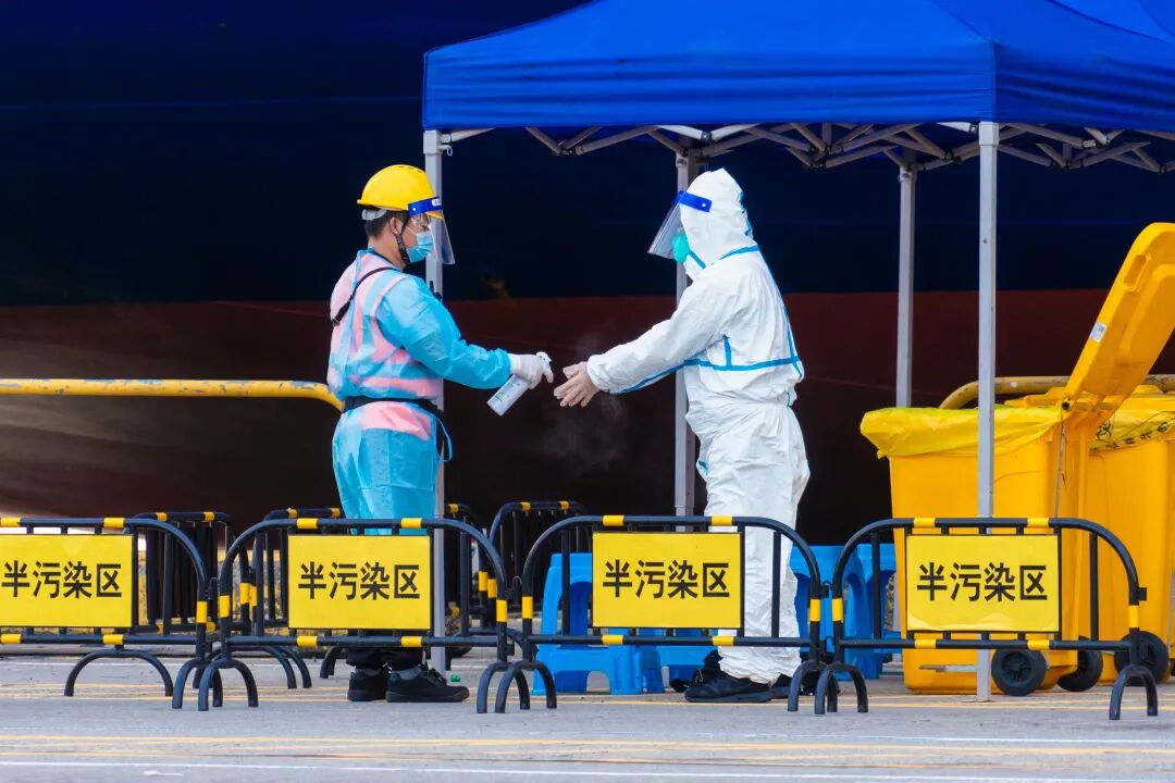 1月7日17时26分,在盐田港区对作业人员进行科学的消杀。王少斌 摄