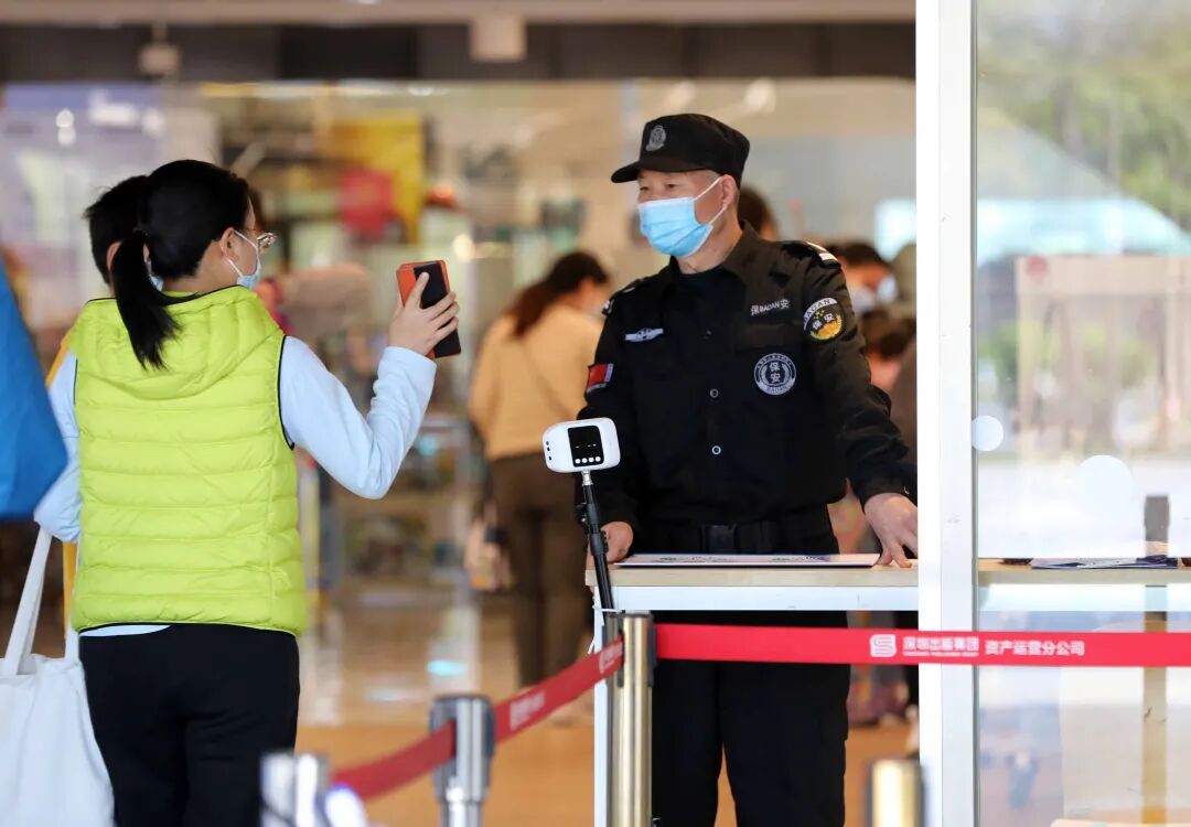 1月8日16时36分,深圳书城保安员对进入的顾客进行查验。陈玉 摄