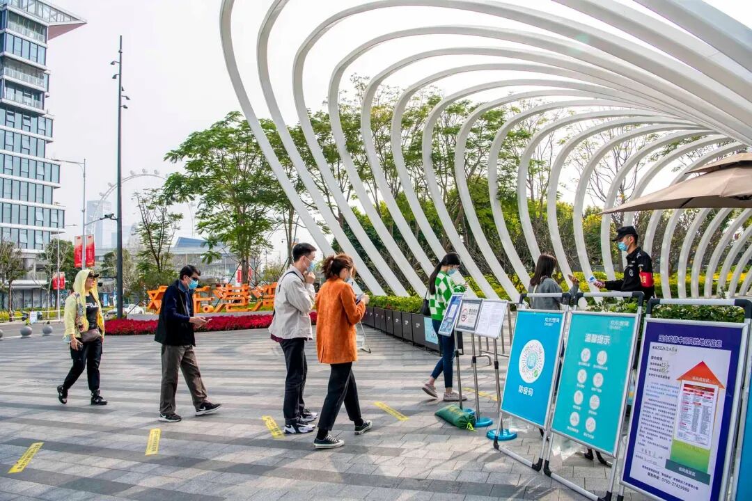 1月7日14时09分,在坂田彩生活时代广场,义工热心为市民做指引,市民有序排队前往采样点。何龙 摄