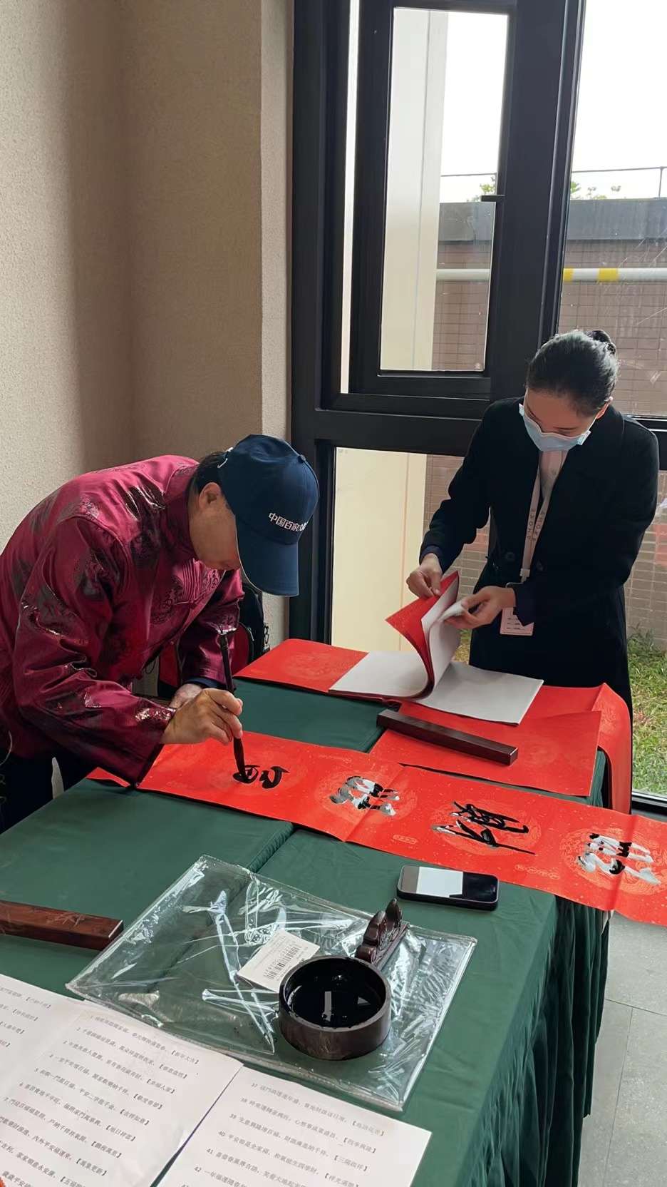 今天和小马去社区写春联,受到社区居民的欢迎。