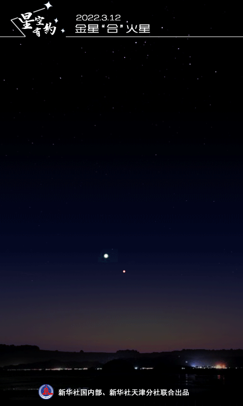 继3月2日太阳系的两颗行星——水星和土星“同框”后,3月12日,太阳系的另外两颗行星——金星和火星也要“同框”了。天文科普专家表示,金火“同框”的视觉效果明显要好于水土“同框”,如果天气晴好,大气透明度高,这幕趣味天象有望用肉眼能观测到。