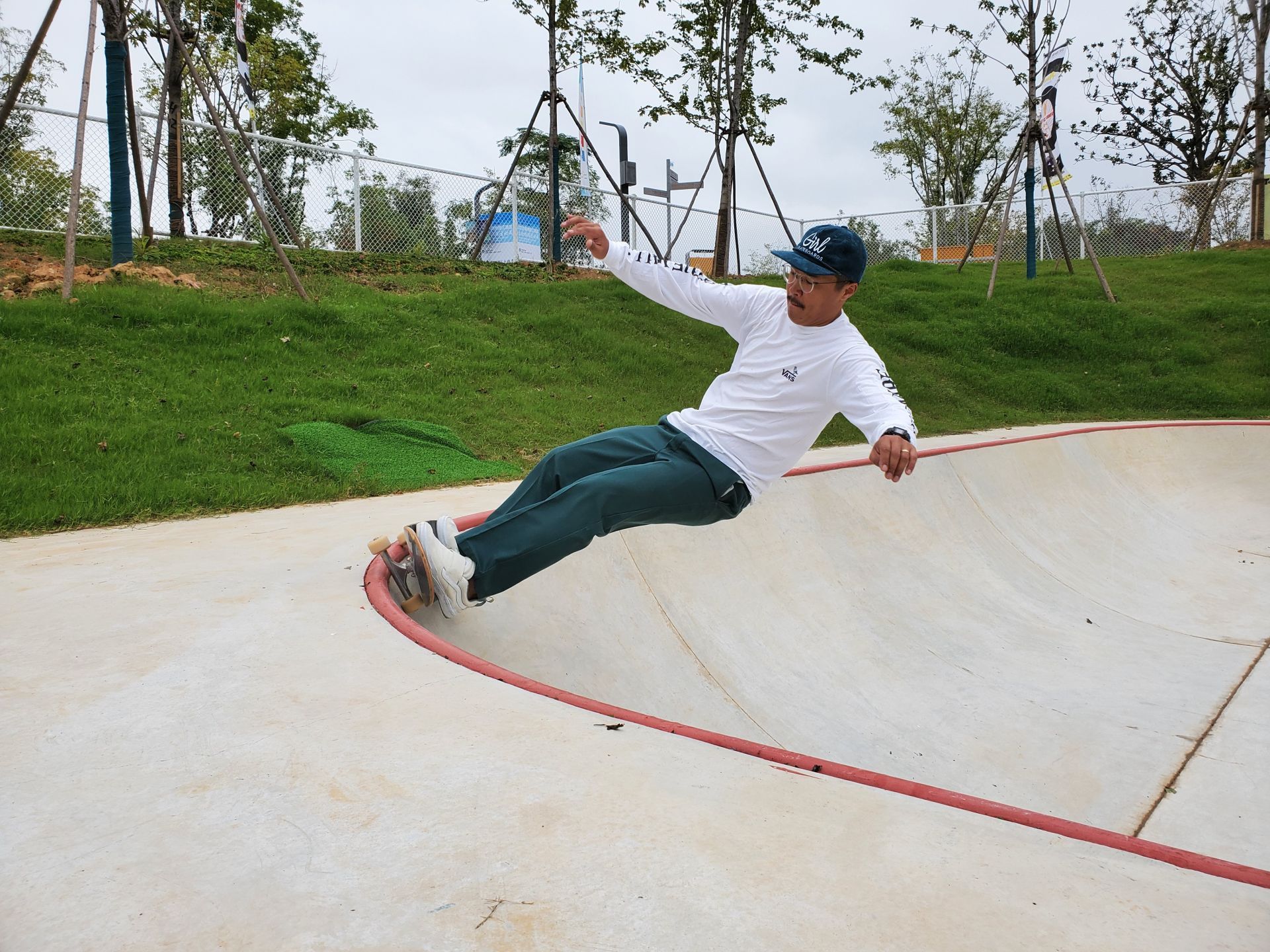 如今,刘文博的滑板早已停止“全年无休”模式,这个滑板男孩将重心更多放在滑板品牌和文化推广上。虽然不再每天踩着滑板出门,总是穿着帆布鞋、鸭舌帽、宽大板裤等经典板仔元素,朋友圈无数条关于滑板的资讯分享,滑板早已渗透到刘文博人生的方方面面。