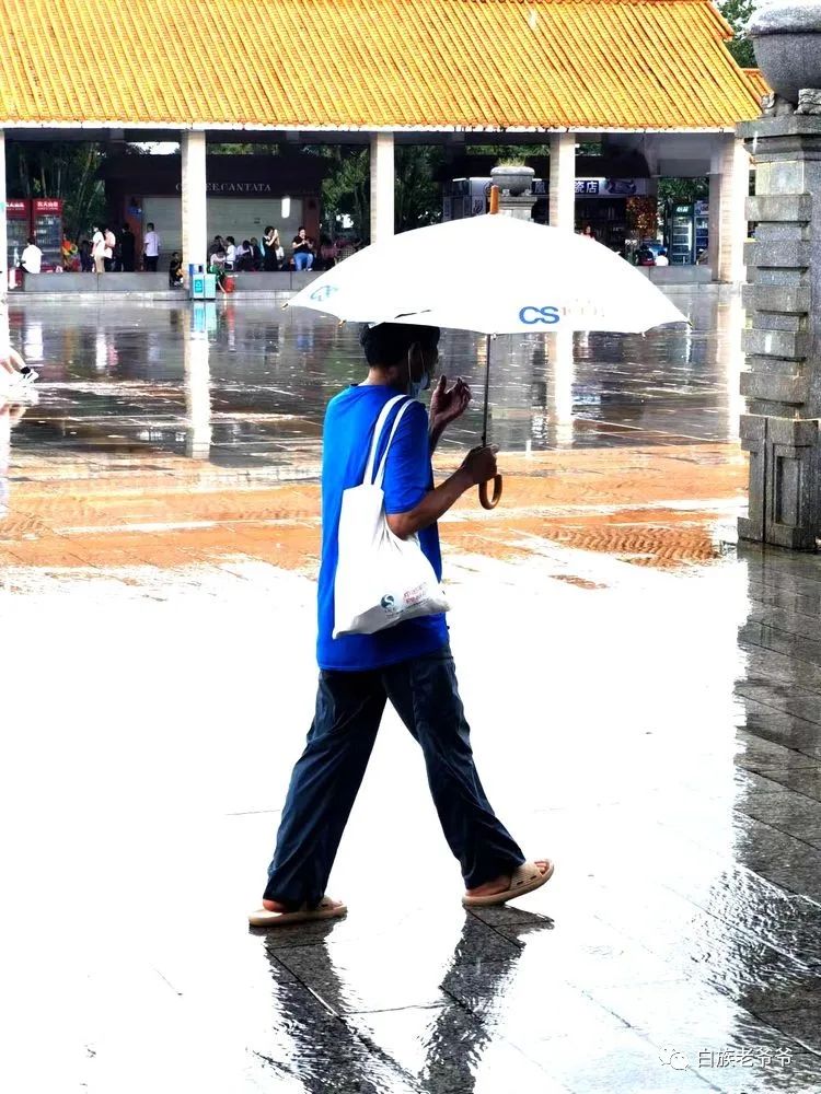 雨停收雨伞后,开始缓缓而行。周日,人还不少。