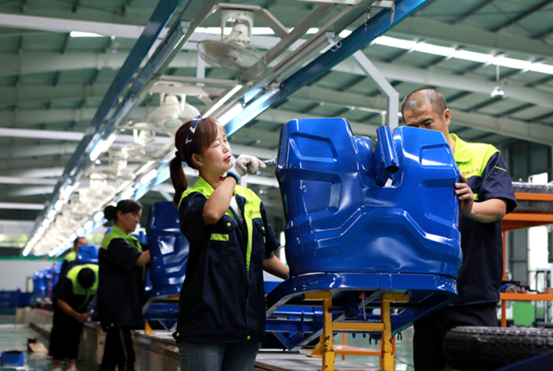 工人在河北省广平县一家新能源汽车企业生产车间作业 新华社记者 王晓 摄