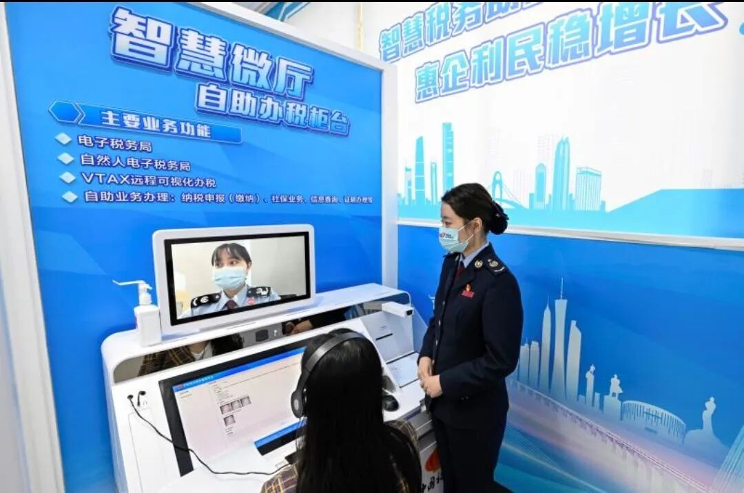 纳税人在智慧柜台体验“湾区通办”业务。图源:广东省税务局
