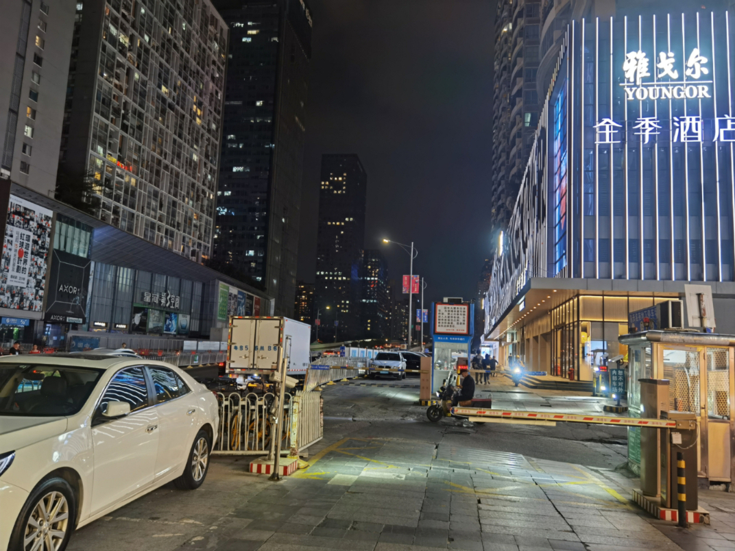 问题:该段条形地块已由区住建局明确为国有未出让用地,现状却被两处经营性停车场占用。这就导致该路段长期没有市政人行道,大量通勤人员、老人、孩子等行人,每天在小汽车、货车、外卖电动车、自行车、档杆的包围中穿梭,秩序非常混乱。