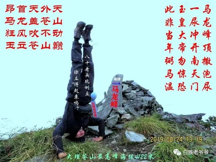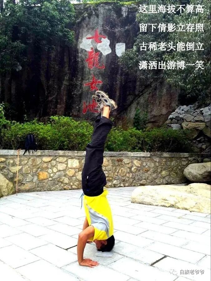 朋友们,老头祝愿你,积极参加全民健身运动。年届八十也能登上马龙之巅玩倒立。努力加油吧,您一定会超过我的!