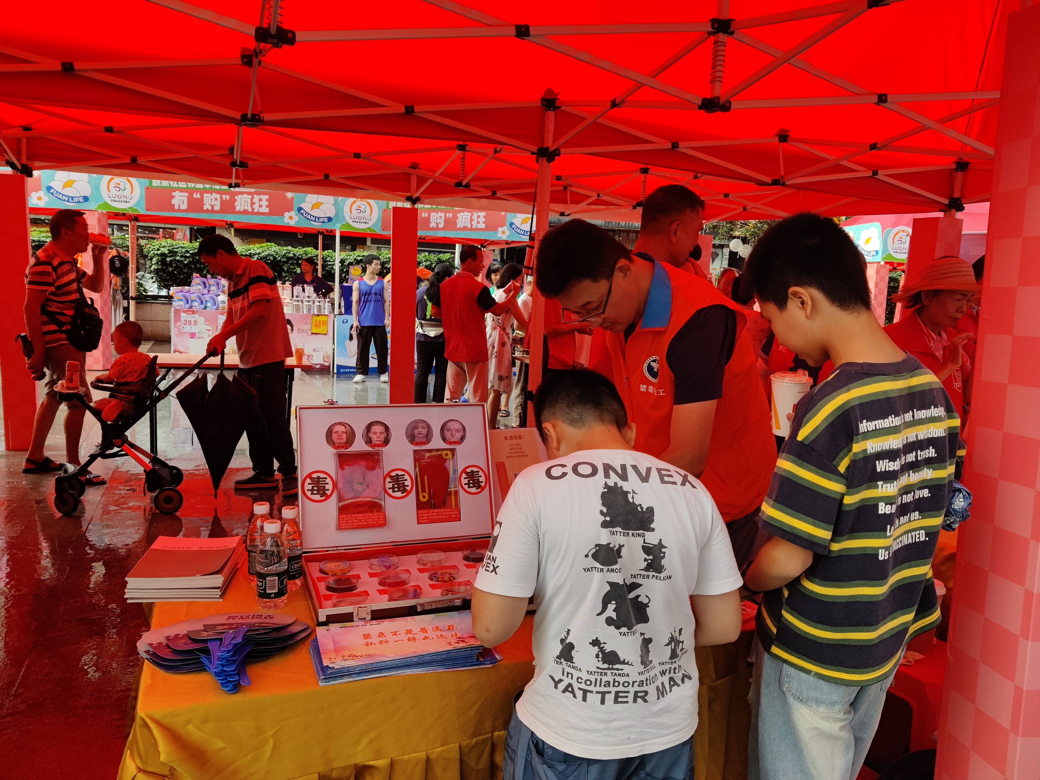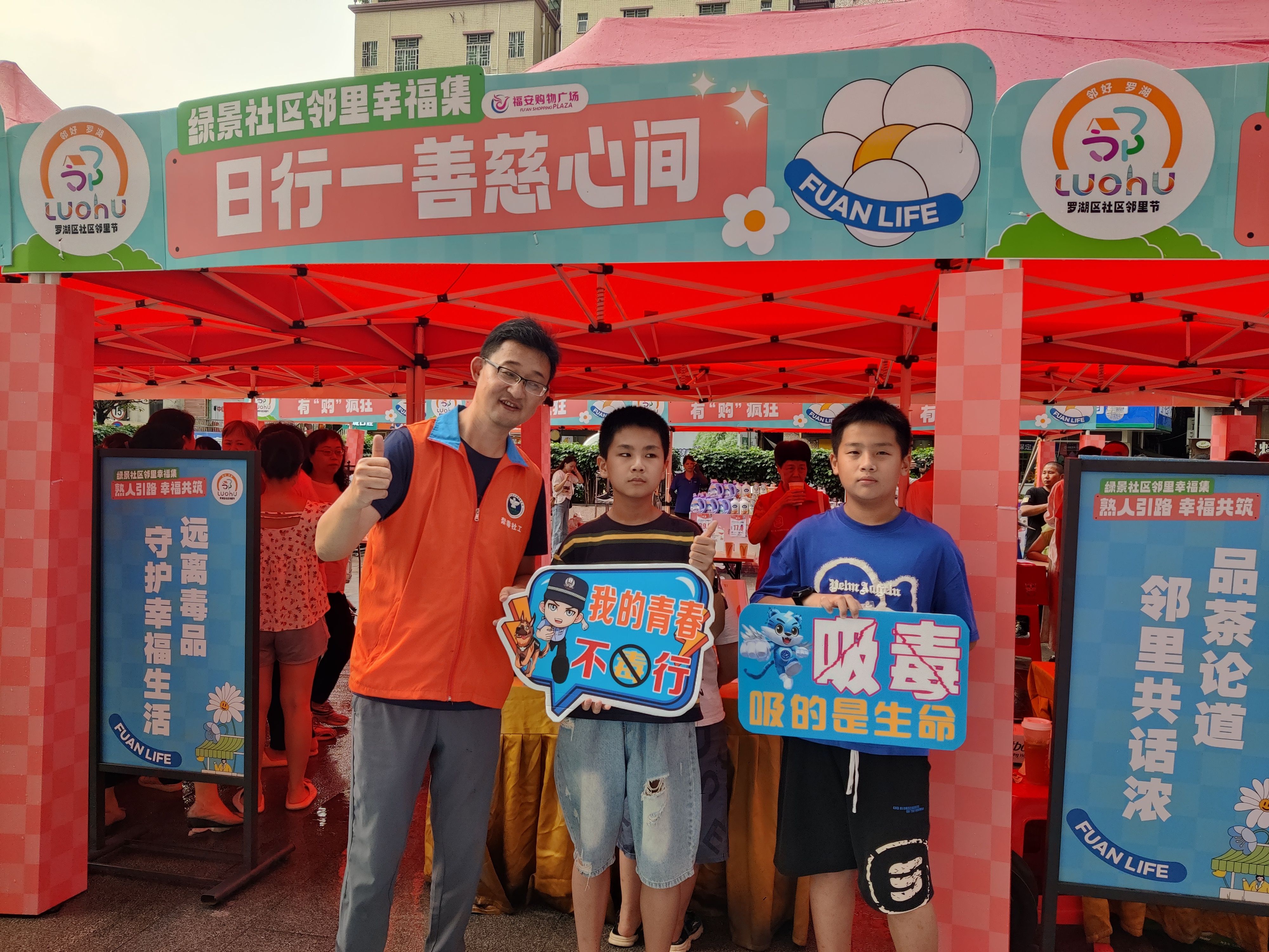 [size=0.3]在国庆佳节到来之际,为确保辖区居民度过一个平安祥和的假期,进一步增强居民的防毒拒毒意识和识毒能力,营造和谐、幸福、无毒的节日氛围,9月28日,罗湖区东晓街道禁毒办组织禁毒社工在绿景社区福安广场开展“邻好!罗湖!——熟人引路 共筑无毒社区”禁毒宣传活动。
