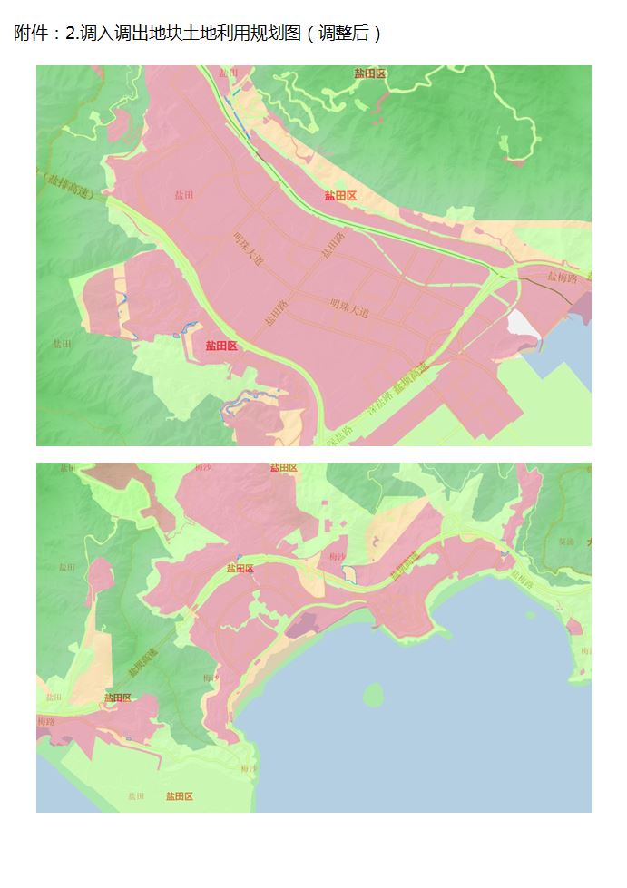 一、本次盐田区建设用地规模边界调整,属于允许建设区和有条件建设区的置换调整,调入和调出地块用地面积相等,在盐田区范围内实现等面积置换,未突破上级土地利用总体规划确定的城乡建设用地控制指标和建设用地总规模,具体如下: