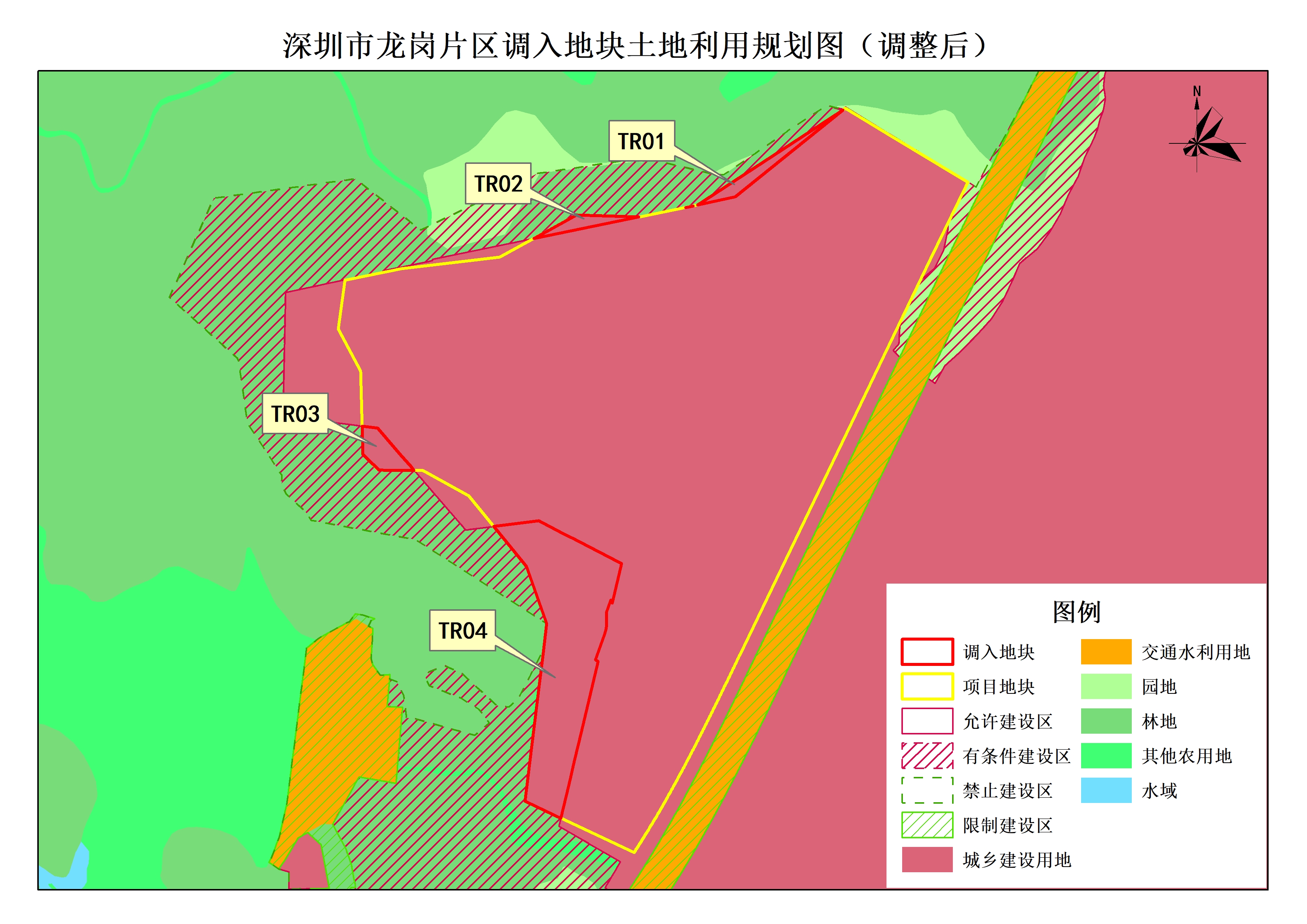 三、本次有条件建设区使用,调入和调出地块用地面积相等,从有条件建设区调入允许建设区面积18592.56平方米,从允许建设区调出为有条件建设区面积18592.56平方米,不涉及耕地和基本农田,龙岗辖区规划建设用地总规模没有增加,城乡建设用地指标没有突破,符合有条件建设区使用原则。本方案调入、调出地块调整前后土地利用总体规划图详见附件。