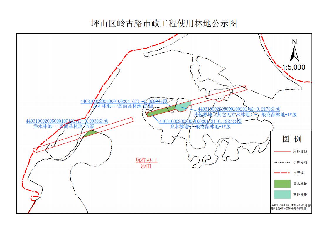 附件:坪山区岭古路市政工程使用林地公示图