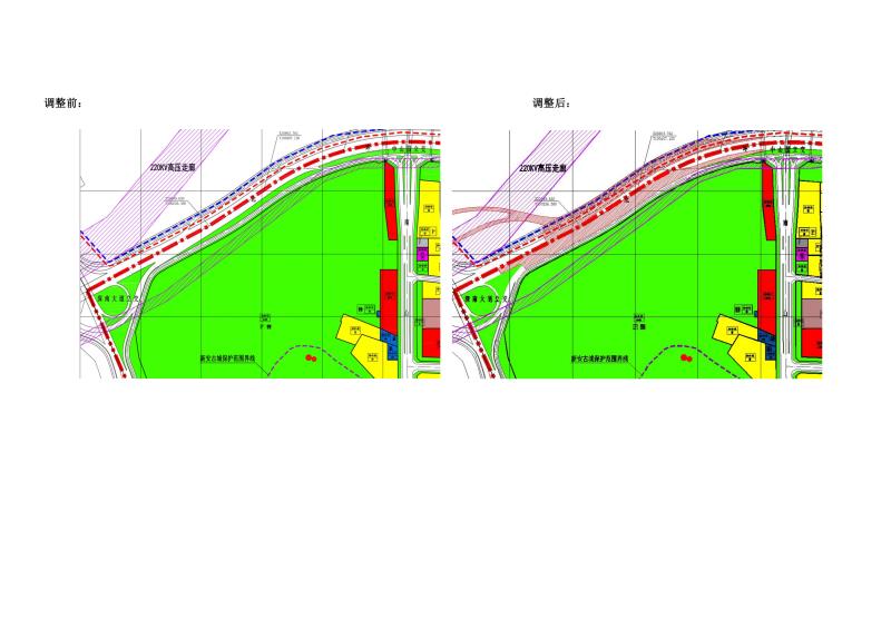 本次调整在图则中新增新城立交匝道(接北环大道段),为将原道路范围内防护绿地调整为道路用地,不改变原道路及周边地块规划控制要求(详见附件2)。