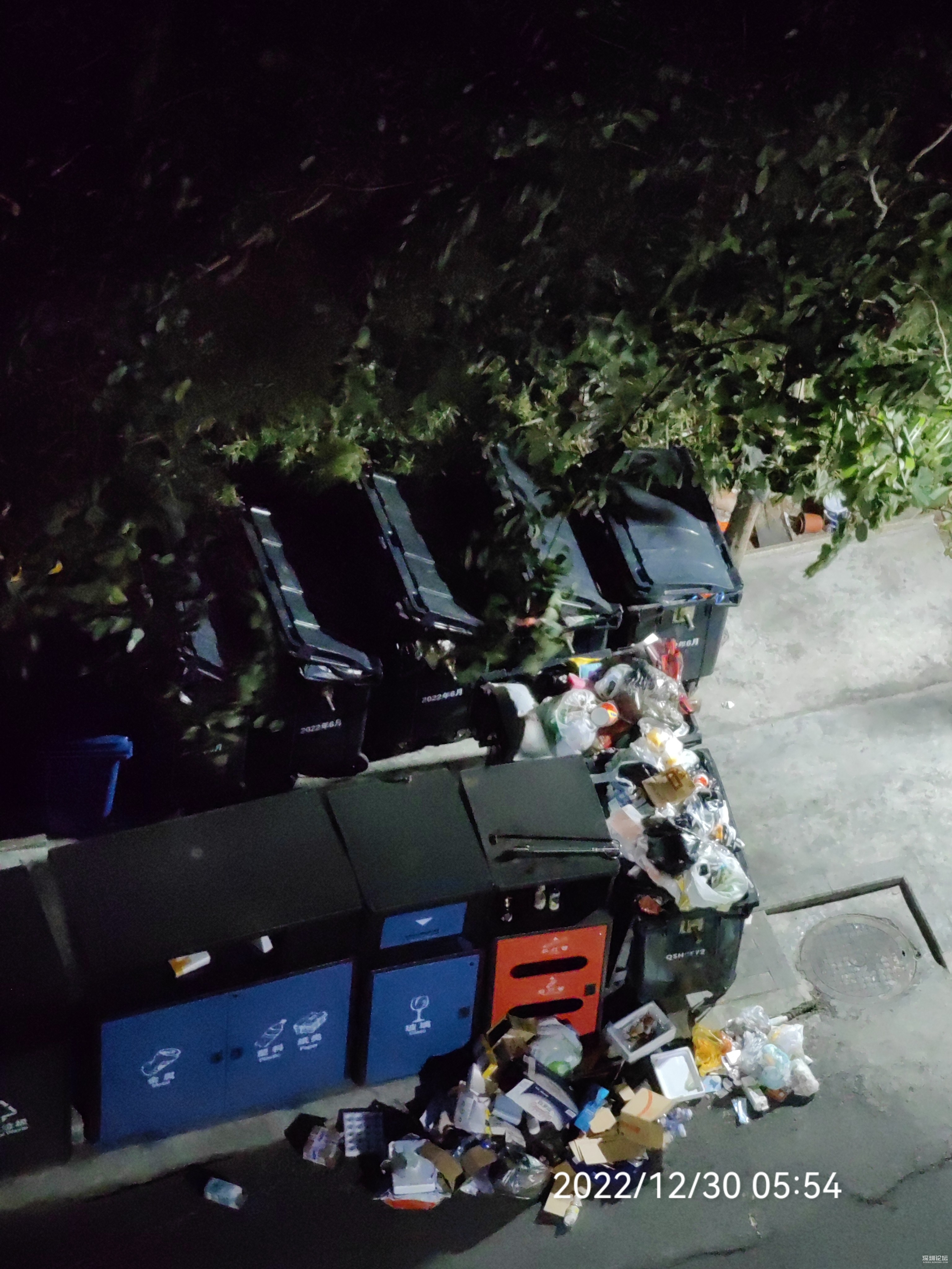银湖半山4栋左侧露天垃圾日夜没盖盖卫生堪忧,几栋楼的居民垃圾集中堆放一小块的地方,选址极不科学,日益增多的垃圾对人的身体危害极大,投诉多次不理不睬,相关单位不作为,物业管理极度缺乏经验,屡教不改,任由垃圾污染环境,垃圾很难闻,而且夏天也会滋生蚊虫,吸引苍蝇,传播疾病,一阵大风就可以将垃圾桶里面的垃圾满天飞舞,不仅不利于小区的环境卫生,而且也给环卫工人制造了不必要的麻烦,邋遢废物都在露天敞开的垃圾桶随风乱飞,也会给小区的业主带来严重的不适,在此,希望有关部门真正为民办好事,此事已拖了两年多了,拜托!