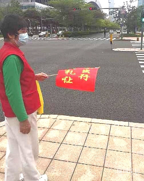 四月五日是清明节,上午天下着中、小雨。福田区莲花街道福中社区老年协会的义工志愿者45人,有的穿着塑料雨披,有的打着雨伞,在社区工作站门口集合完毕,受领过美化家园,创建全国文明城市活动任务之后,按照社区党委副书记陈惠璇、张嘉裕分配的任务及区域,即刻展开行动。一是捡拾中心书城广场、道路的烟头、纸屑;二是摆放整齐停车点的共享单车;三是到指定的几个十字路口引导行人遵守交规,安全通行;四是文明礼貌解答市民、游客各种咨询。