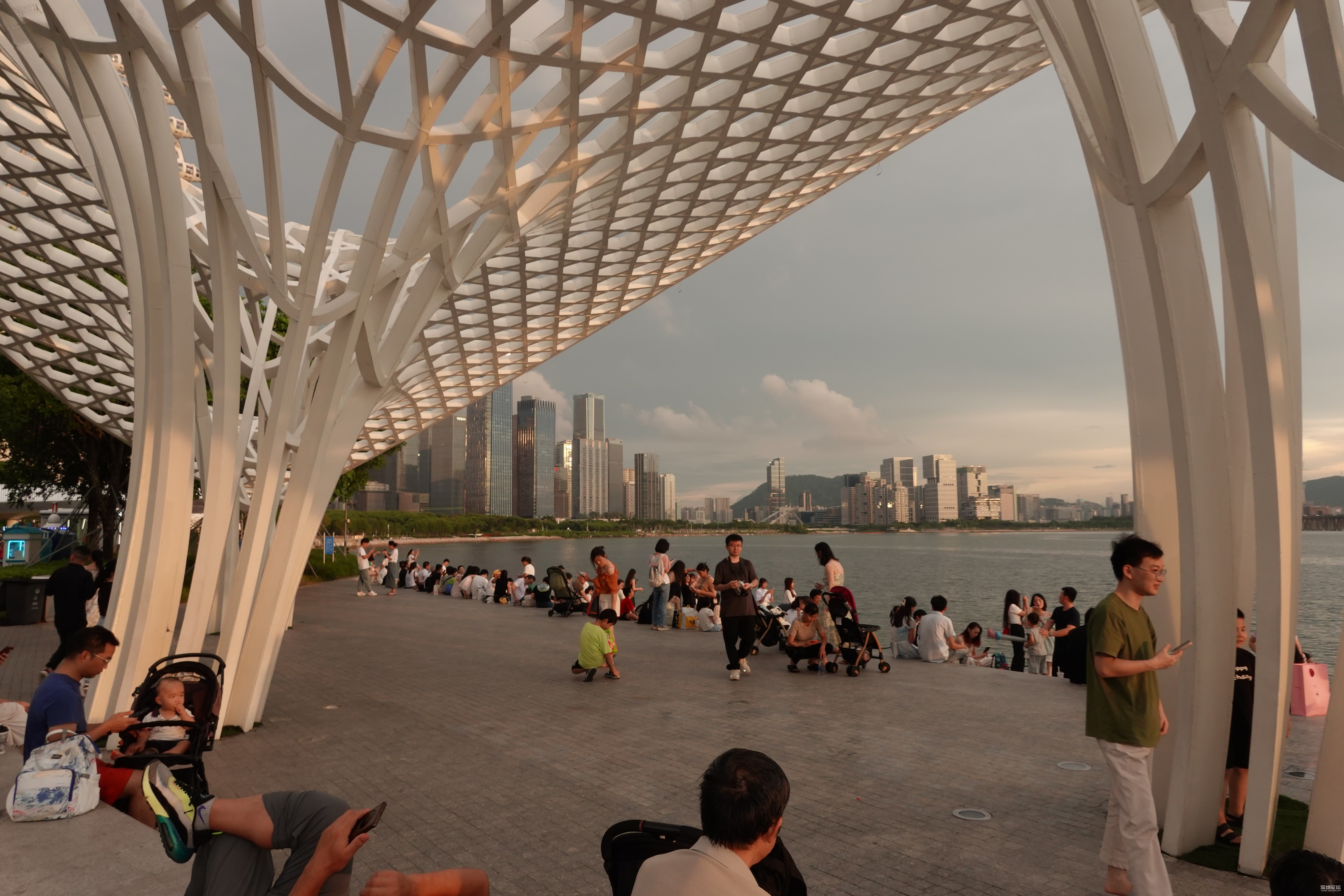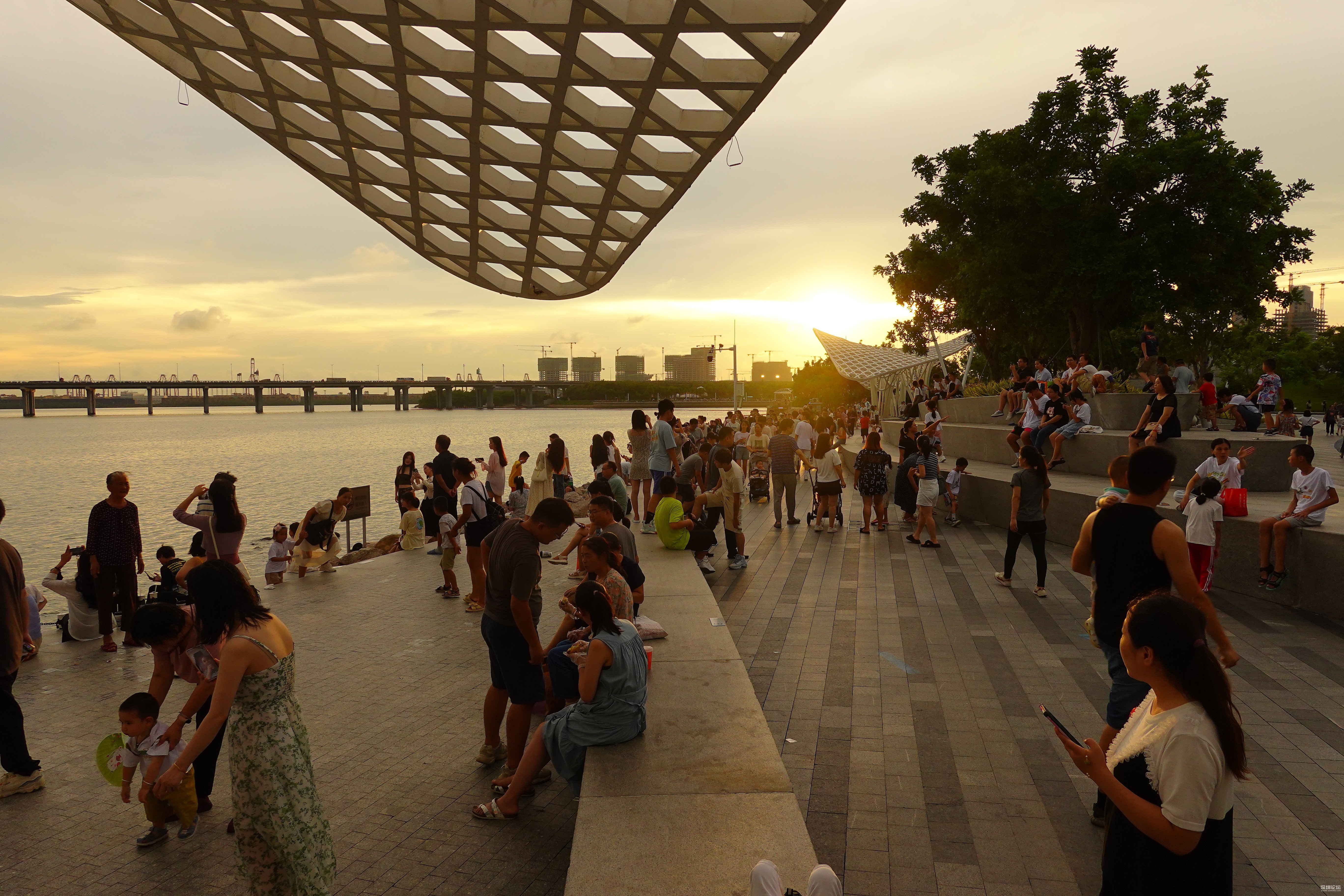 难耐的酷热日渐消退,更多的市民走出家门。我们随着人流来到欢乐港湾,吹吹海风,看看美景,心情大好。