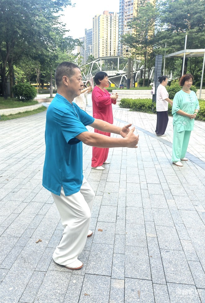 老李是一名退伍軍人,他十八岁参军,在边防部队服役了24年,现在他退休了,来到我们水榭春天太极拳队,和老年朋友一起习拳,带来了部队的好传统,他积极参加活动,热心为拳友们服务,成了太极拳队翟队长的好帮手。他的儿子抢了一部最新款的华为M60手机,自已不用,孝敬老爸,于是老李用这部世界一流水平的手机拍照,录相,记录我们快乐的生活。为了参加中国社会银龄艺术调演活动,太极拳队拟表演气功八段锦,他录制视频,纠正动作,受到好评。