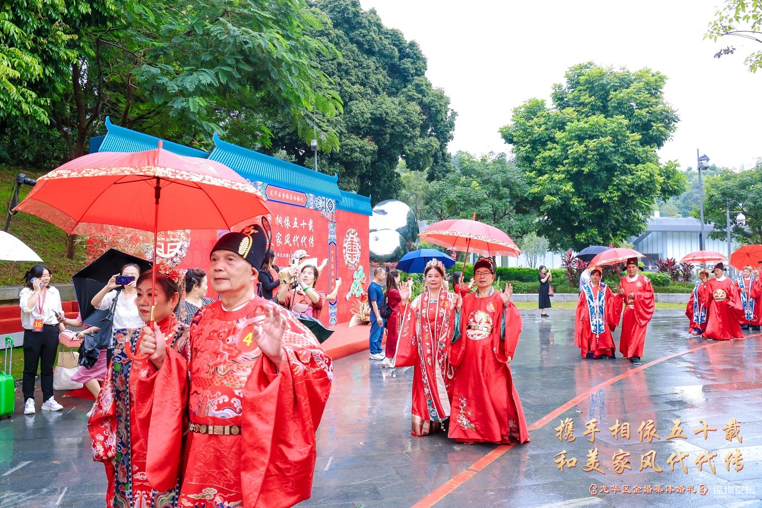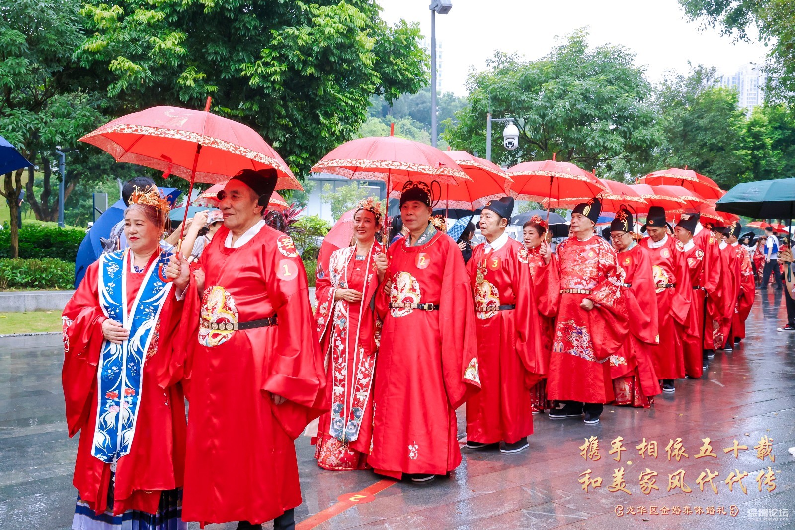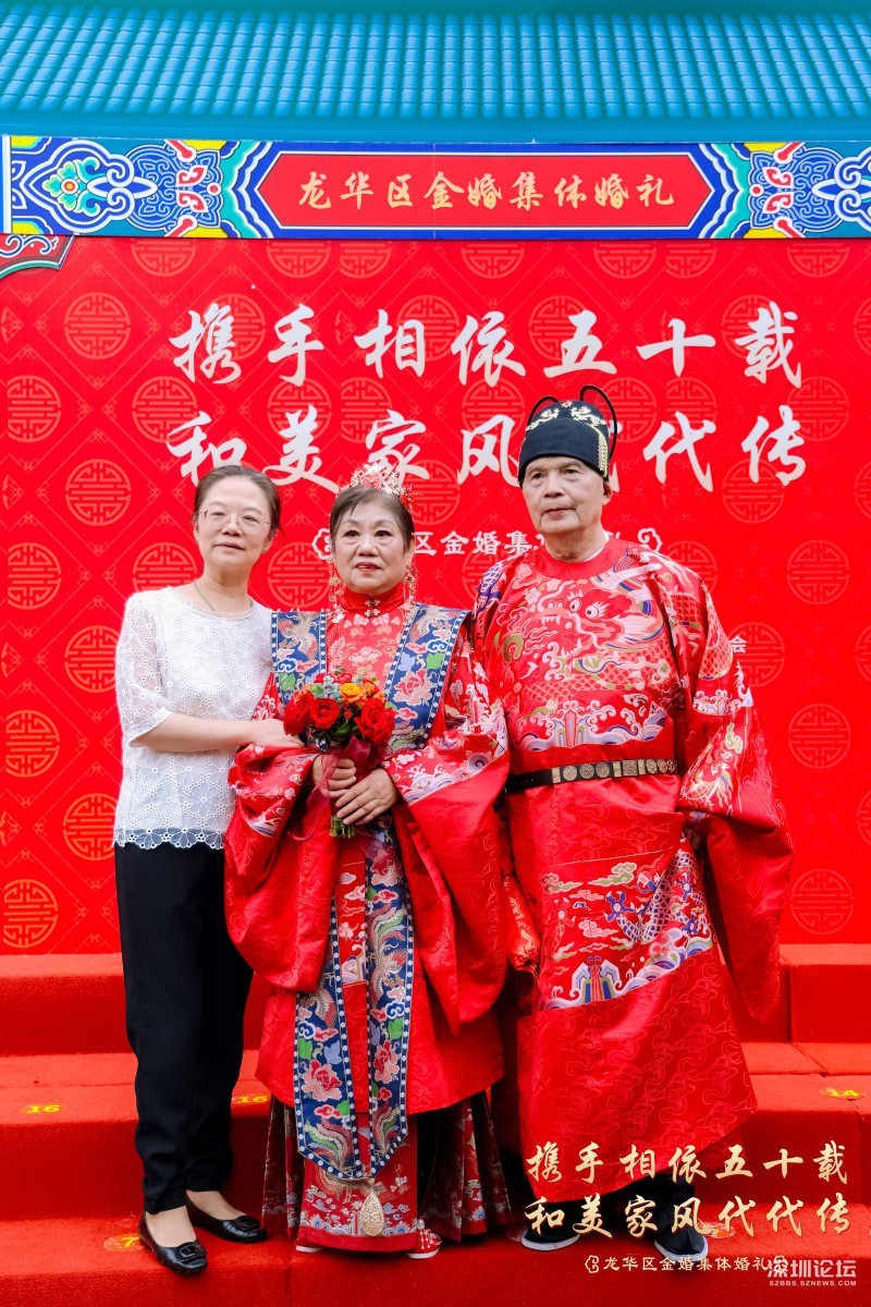 18号金婚夫妻代表十九对金婚夫感谢举办这些活动的龙华区委宣传部,龙华区文体局,龙华区民政局,龙华区婦联。他说, 我是18号金婚夫妻,很荣幸参加了这次金婚活动,感谢政府赏婚,共同见证我们的爱情!心中无比激动和感动!在此请允许我代表19对金婚夫妻向举办方、主持人、摄像师、化妆师、音响师等所有的台前幕后的工作人员表示衷心地感谢!我们这一代是最不容易的一代,当时经济条件不太好,结婚时极其简朴,婚礼都没有举行就开始过日子了。有的只是生儿育女,柴米油盐,实实在在,平淡无奇的婚姻生活。忙忙碌碌几十年,还没有好好享受生活就已经老了。五十年来,我们风雨同舟,历经过困难,也受过委屈,但一路走来还是幸福更多!对老伴唯一的遗憾就是从来没有让她穿过婚纱、办过婚礼。今天有幸参加这场浪漫的“金婚婚礼”,在儿女和现场嘉宾的见证下圆了一个别样浪漫的婚纱梦,给我们的婚姻生活再添一份珍贵而美好的回忆。这一切的一切都要感谢伟大的祖国,感谢党和人民,感谢龙华区政府,感谢龙华区委宣传部,感谢龙华广电旅游体育局,感谢龙华区民政局,感谢龙华区妇女联合会等相关单位。 我认为上苍对我们够宽容仁慈了!据说世界上享有金婚者不足总人数的三成。我们作为金婚的真正享有者,何其幸运也!携手相依五十载,和美家风代代传!举办金婚纪念活动意义重大深远!有益于关爱老年人,满足老年人的精神文化生活需求,让老年人体会到社会大家庭的温暖与关怀。同时也是为了传递爱情忠贞美好、家庭幸福等深厚文化内涵,有利于和美家风代代传播和颂扬。最后献上我最真挚的祝福:祝大家健康平安!笑口常开!万事如意!阖家欢乐!让我们把金婚当起点,在夕阳的余晖中昂首挺胸,笑着走向生命的光辉顶点!让我们的爱情永恒不老,白首不分离,岁月静好,如初相见,一直幸福到永远!