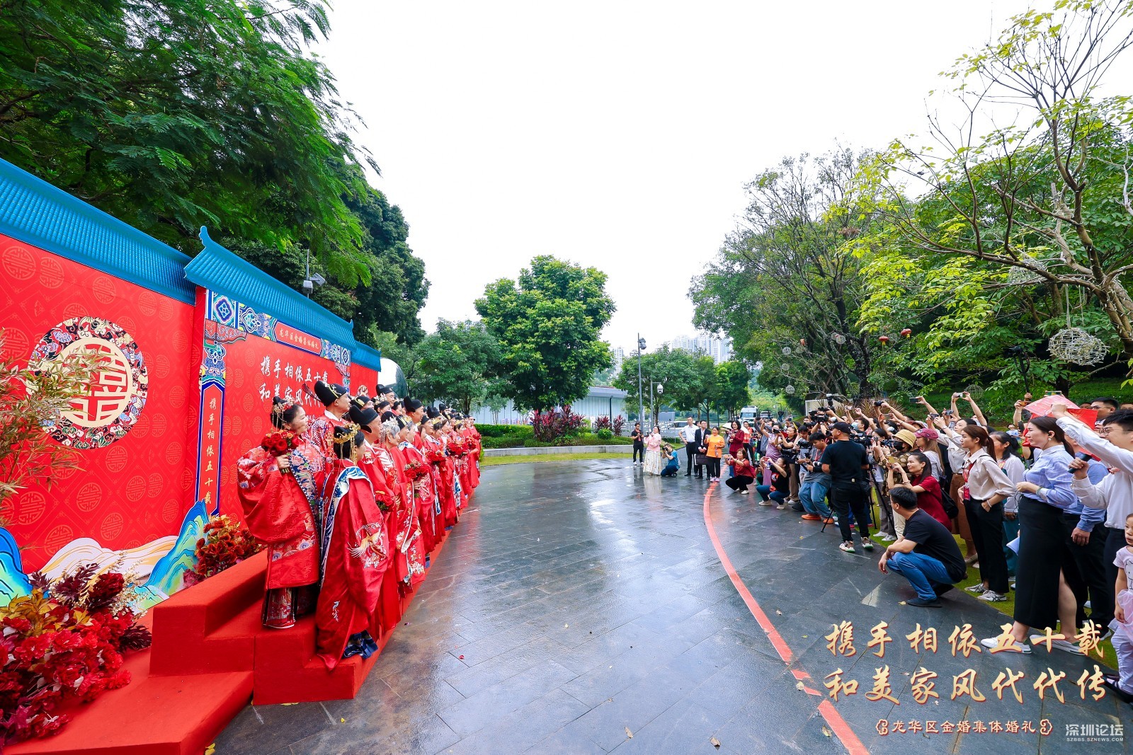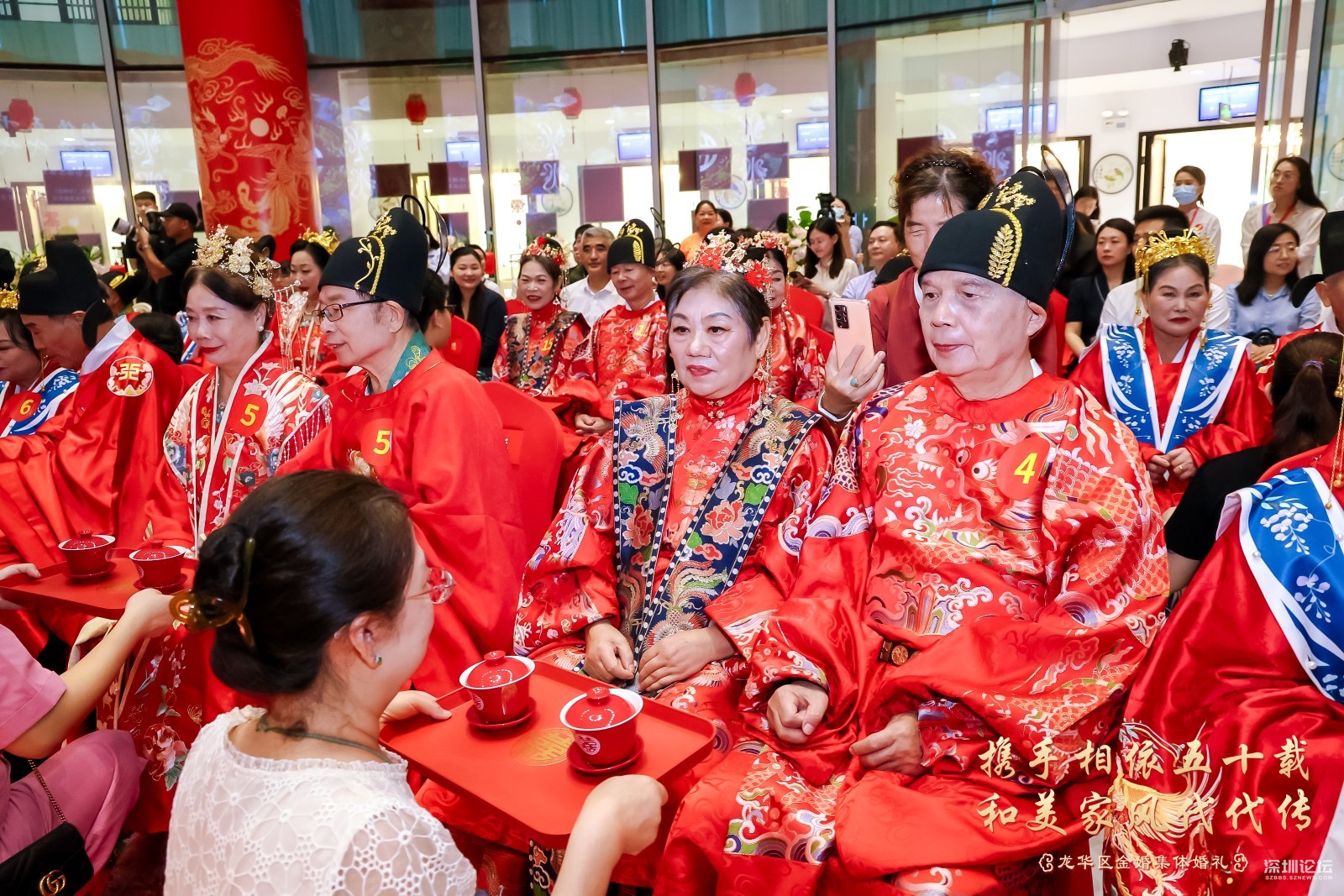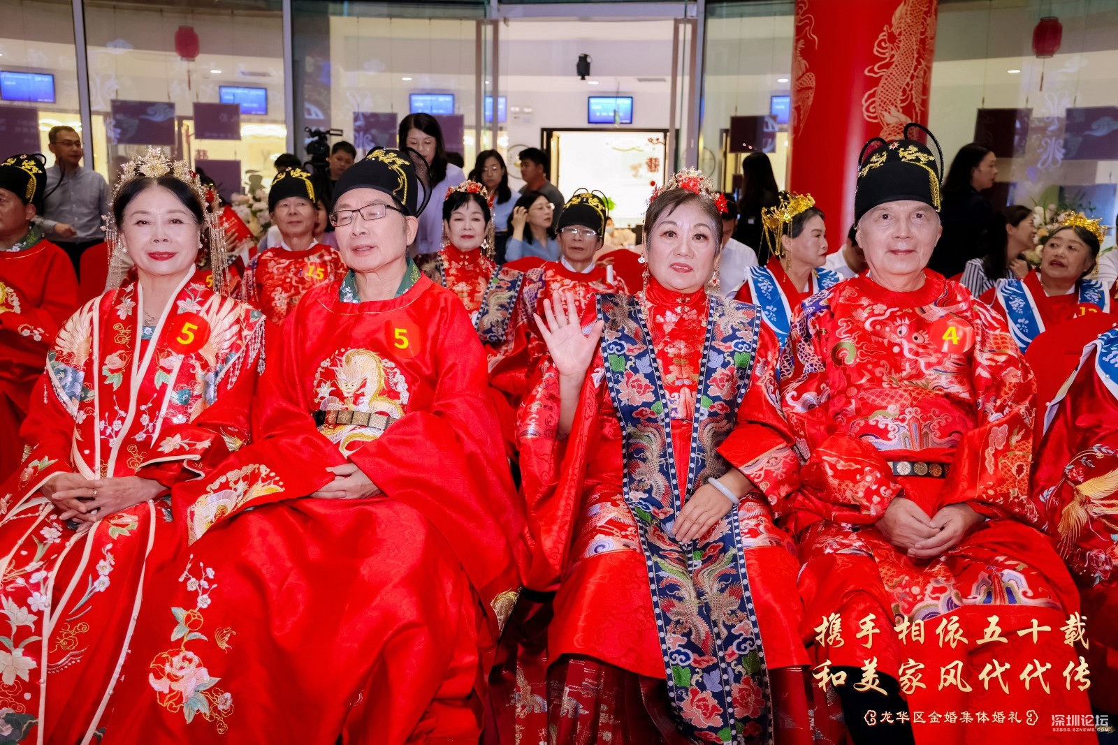 18号金婚夫妻代表十九对金婚夫感谢举办这些活动的龙华区委宣传部,龙华区文体局,龙华区民政局,龙华区婦联。他说, 我是18号金婚夫妻,很荣幸参加了这次金婚活动,感谢政府赏婚,共同见证我们的爱情!心中无比激动和感动!在此请允许我代表19对金婚夫妻向举办方、主持人、摄像师、化妆师、音响师等所有的台前幕后的工作人员表示衷心地感谢!我们这一代是最不容易的一代,当时经济条件不太好,结婚时极其简朴,婚礼都没有举行就开始过日子了。有的只是生儿育女,柴米油盐,实实在在,平淡无奇的婚姻生活。忙忙碌碌几十年,还没有好好享受生活就已经老了。五十年来,我们风雨同舟,历经过困难,也受过委屈,但一路走来还是幸福更多!对老伴唯一的遗憾就是从来没有让她穿过婚纱、办过婚礼。今天有幸参加这场浪漫的“金婚婚礼”,在儿女和现场嘉宾的见证下圆了一个别样浪漫的婚纱梦,给我们的婚姻生活再添一份珍贵而美好的回忆。这一切的一切都要感谢伟大的祖国,感谢党和人民,感谢龙华区政府,感谢龙华区委宣传部,感谢龙华广电旅游体育局,感谢龙华区民政局,感谢龙华区妇女联合会等相关单位。 我认为上苍对我们够宽容仁慈了!据说世界上享有金婚者不足总人数的三成。我们作为金婚的真正享有者,何其幸运也!携手相依五十载,和美家风代代传!举办金婚纪念活动意义重大深远!有益于关爱老年人,满足老年人的精神文化生活需求,让老年人体会到社会大家庭的温暖与关怀。同时也是为了传递爱情忠贞美好、家庭幸福等深厚文化内涵,有利于和美家风代代传播和颂扬。最后献上我最真挚的祝福:祝大家健康平安!笑口常开!万事如意!阖家欢乐!让我们把金婚当起点,在夕阳的余晖中昂首挺胸,笑着走向生命的光辉顶点!让我们的爱情永恒不老,白首不分离,岁月静好,如初相见,一直幸福到永远!