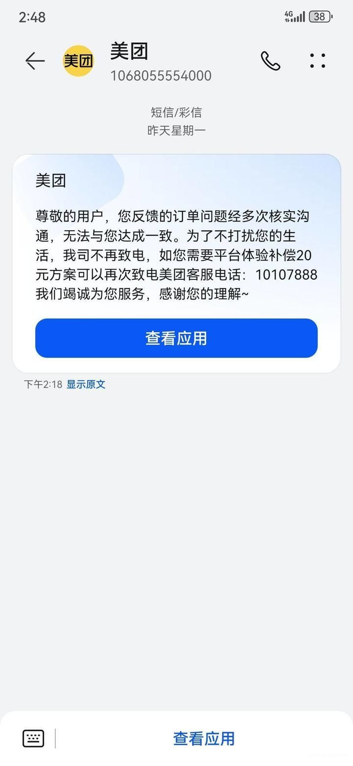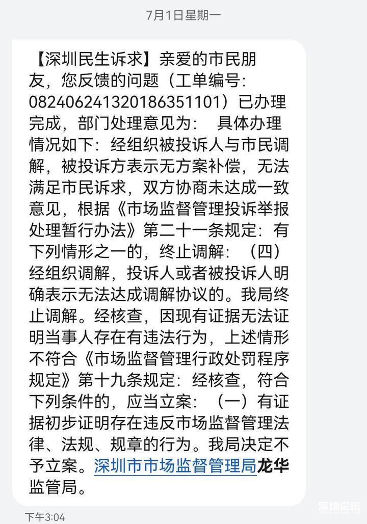 关于下面的那个回复哪里来的,根本就没有人调解,都没有一个调解电话,经组织调解,哪个组织呀?根本就没有,美团平台一开始给的就是退款,而不是经过组织调解。而且这个是调解呀?列异商家你去调解什么的,现在我话费损失无人负责,要求按照消费者权益保护法退一赔三不足五百按照五百算都没有人搭理,美团买药和深圳市龙华市场都没有一个电话联系解释一下吗?没有人来道歉处理吗?
